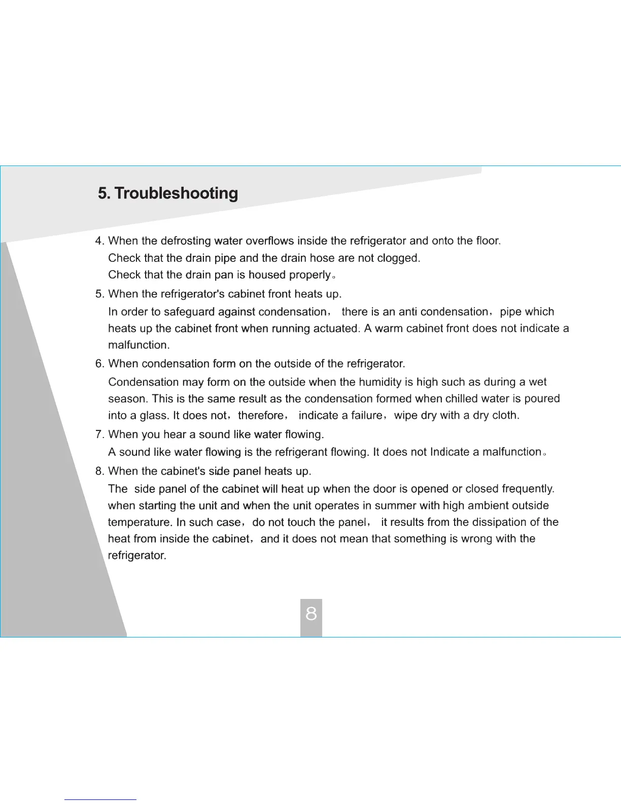 Igloo FR328B - Defrosting Water Overflow; Cabinet Front Heating Explanation; External Condensation Causes; Normal Operating Sounds
