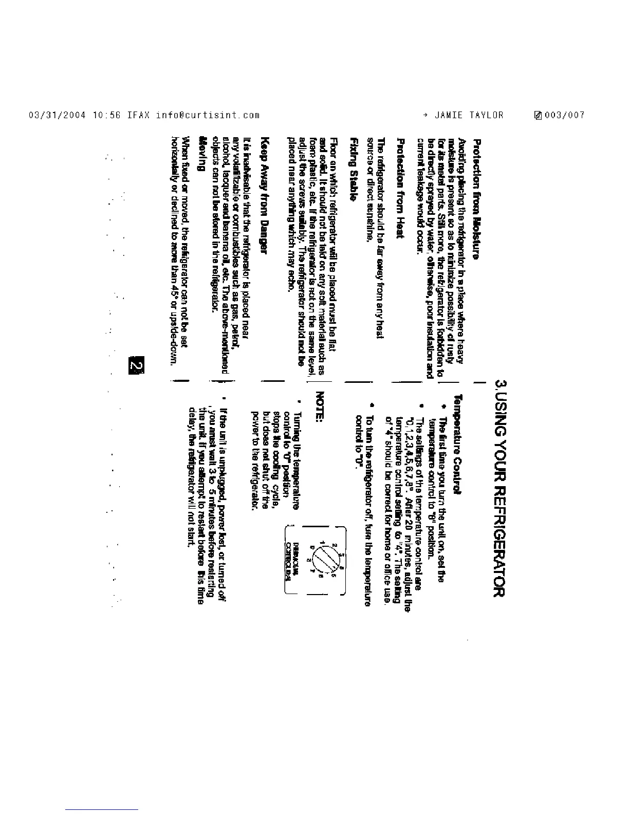 Igloo FR405 - Using Your Refrigerator; Protection from Moisture; Protection from Heat; Keep Away from Danger