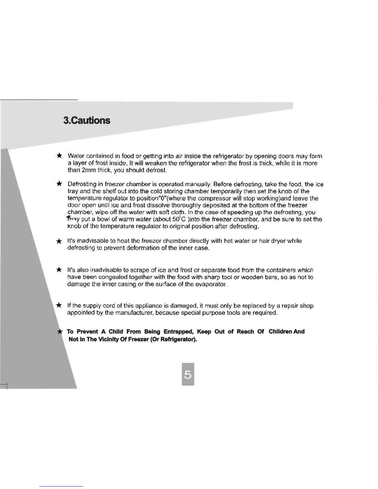 Igloo FR464 - Cautions; Defrosting Procedure; Cleaning Frost; Supply Cord Replacement