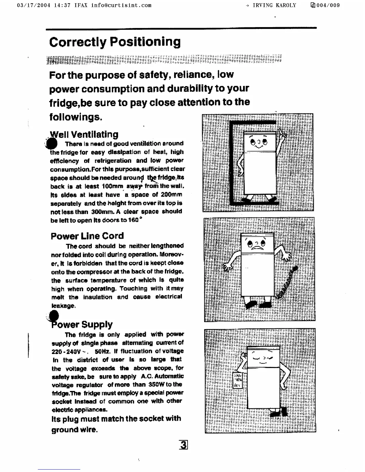 Igloo FR832 - Correct Positioning and Setup; Ventilation Requirements; Power Line Cord Handling; Power Supply Specifications
