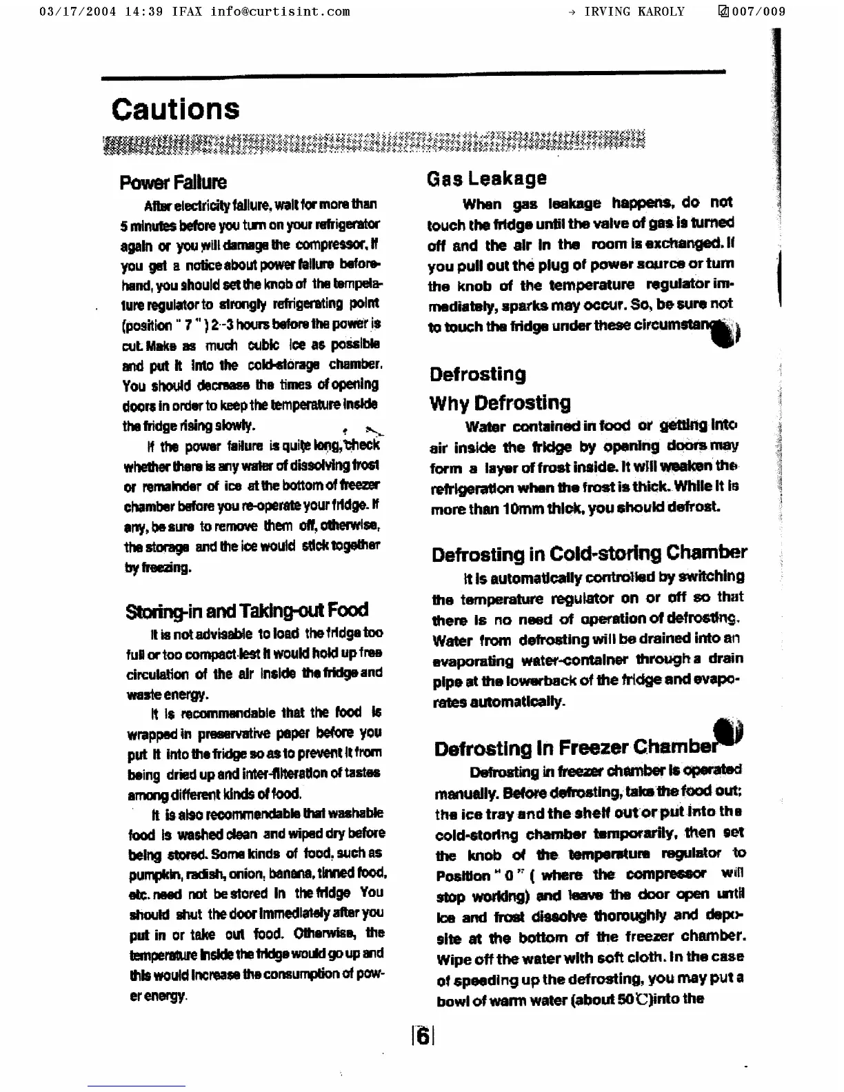 Igloo FR832 - Cautions and Maintenance; Power Failure Procedures; Food Storage Best Practices; Gas Leakage Safety