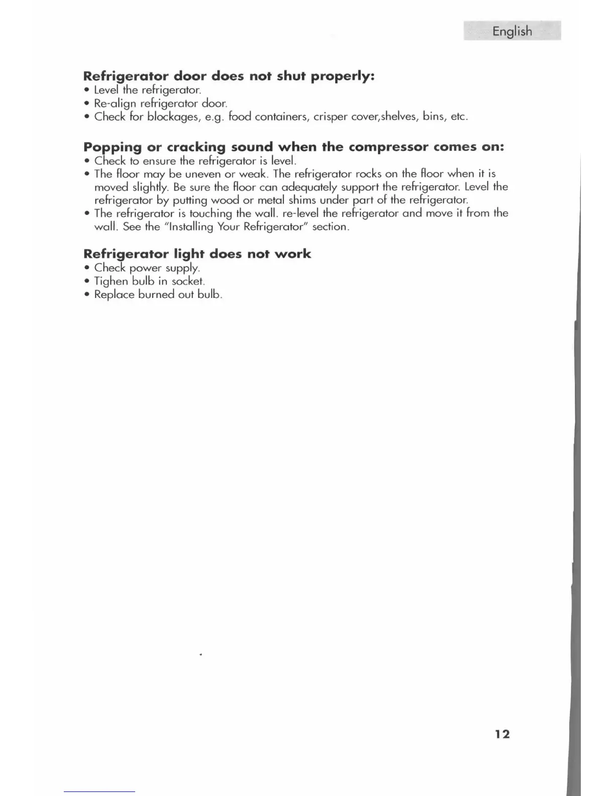 .Thefl∞rmaybeunevenorwcak.Therefrige「a†o「r∝kson†hefi∞rWhenitis