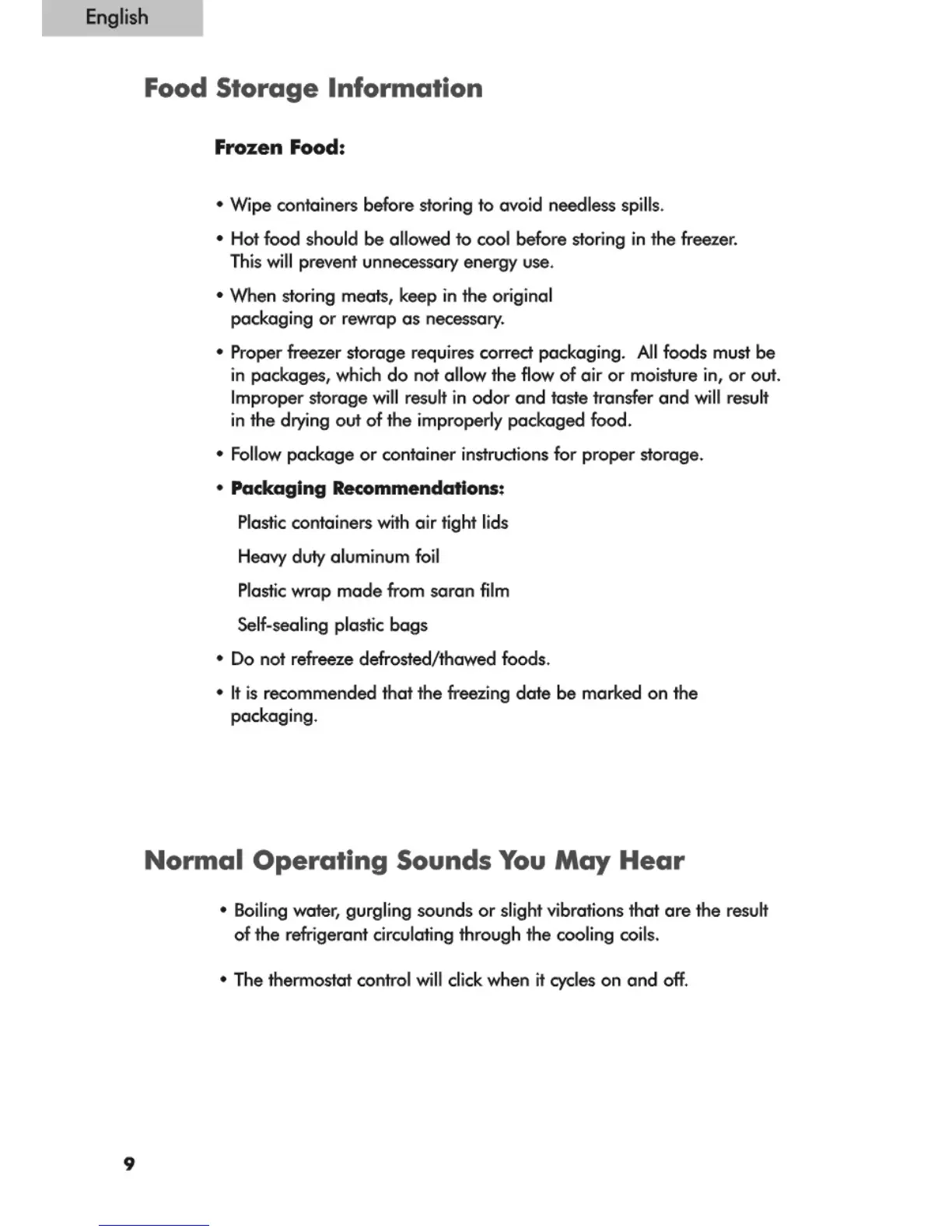Igloo FRF434 - Food Storage Information; Normal Operating Sounds You May Hear