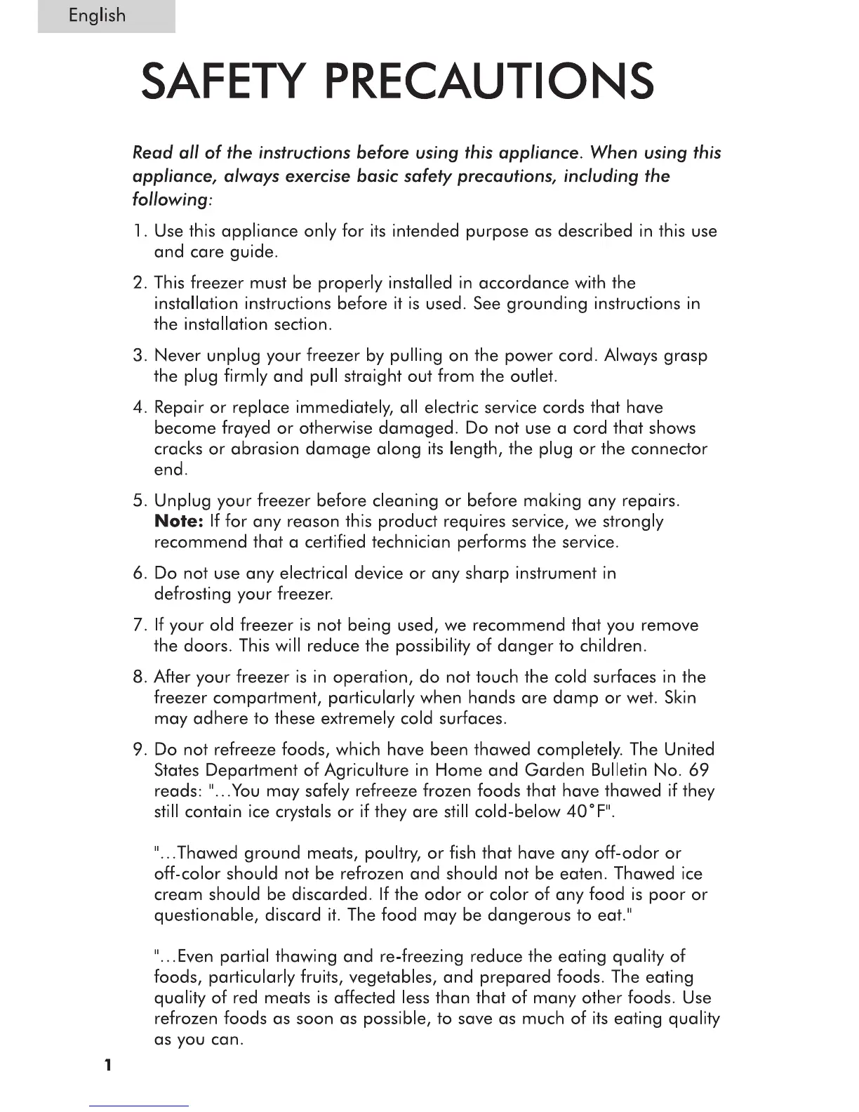 Igloo FRF438 - SAFETY PRECAUTIONS