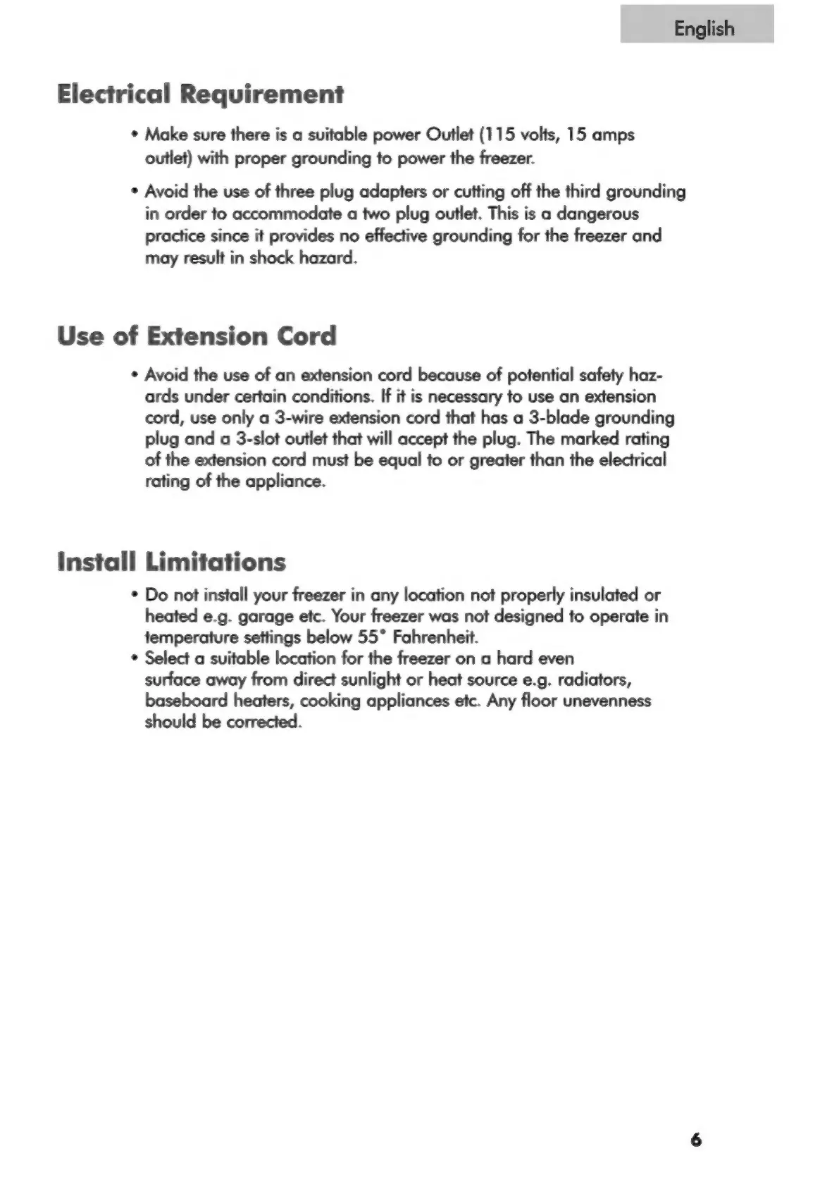 Igloo FRF452 - Electrical Requirements and Limitations