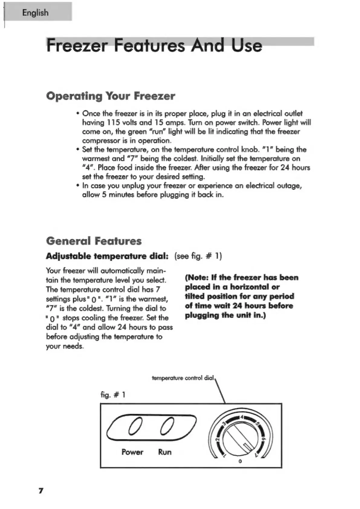 Igloo FRF452 - Freezer Features and Use; Operating Your Freezer