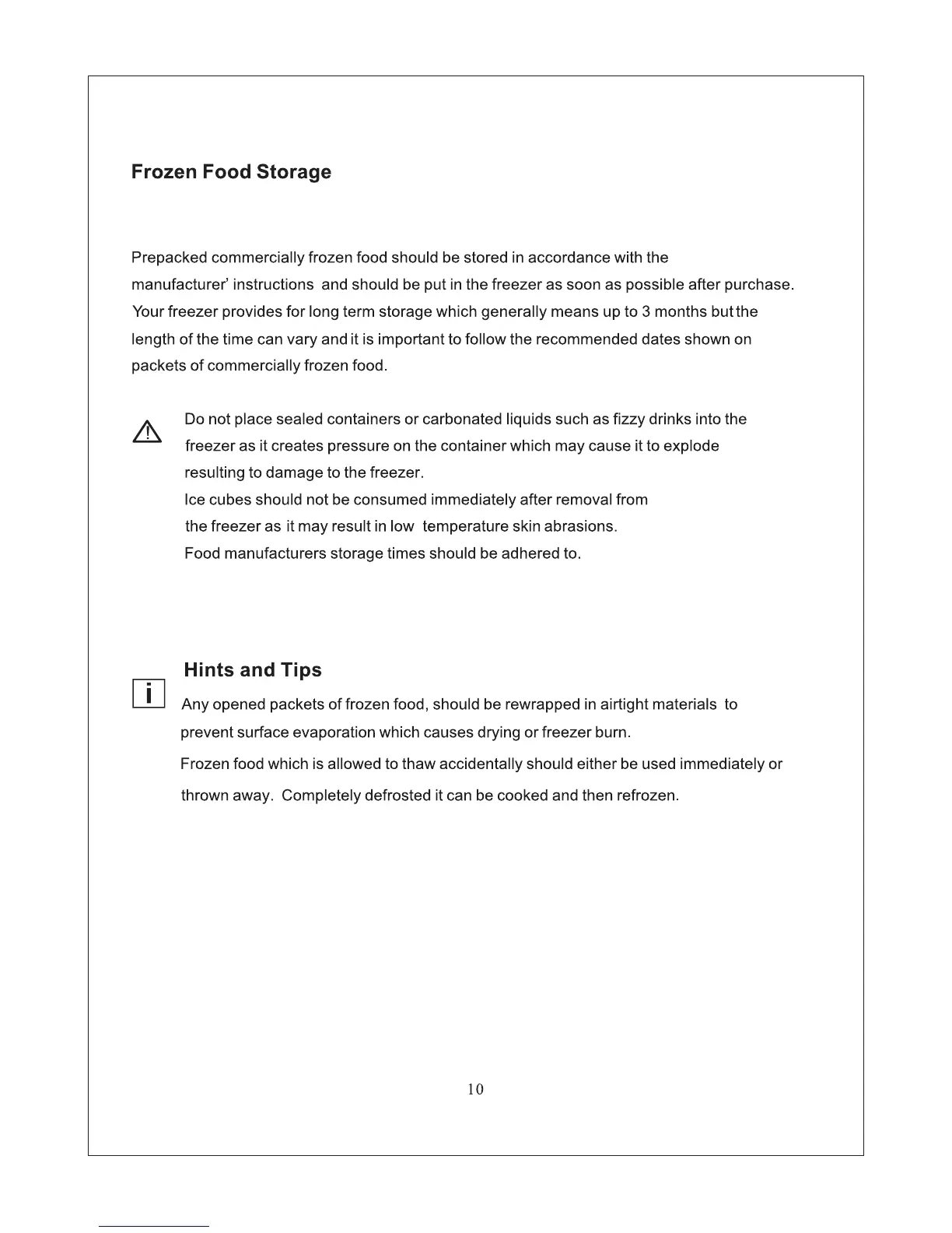 Igloo FRF690B - Food Storage and Tips; Frozen Food Storage Recommendations; Helpful Hints and Tips