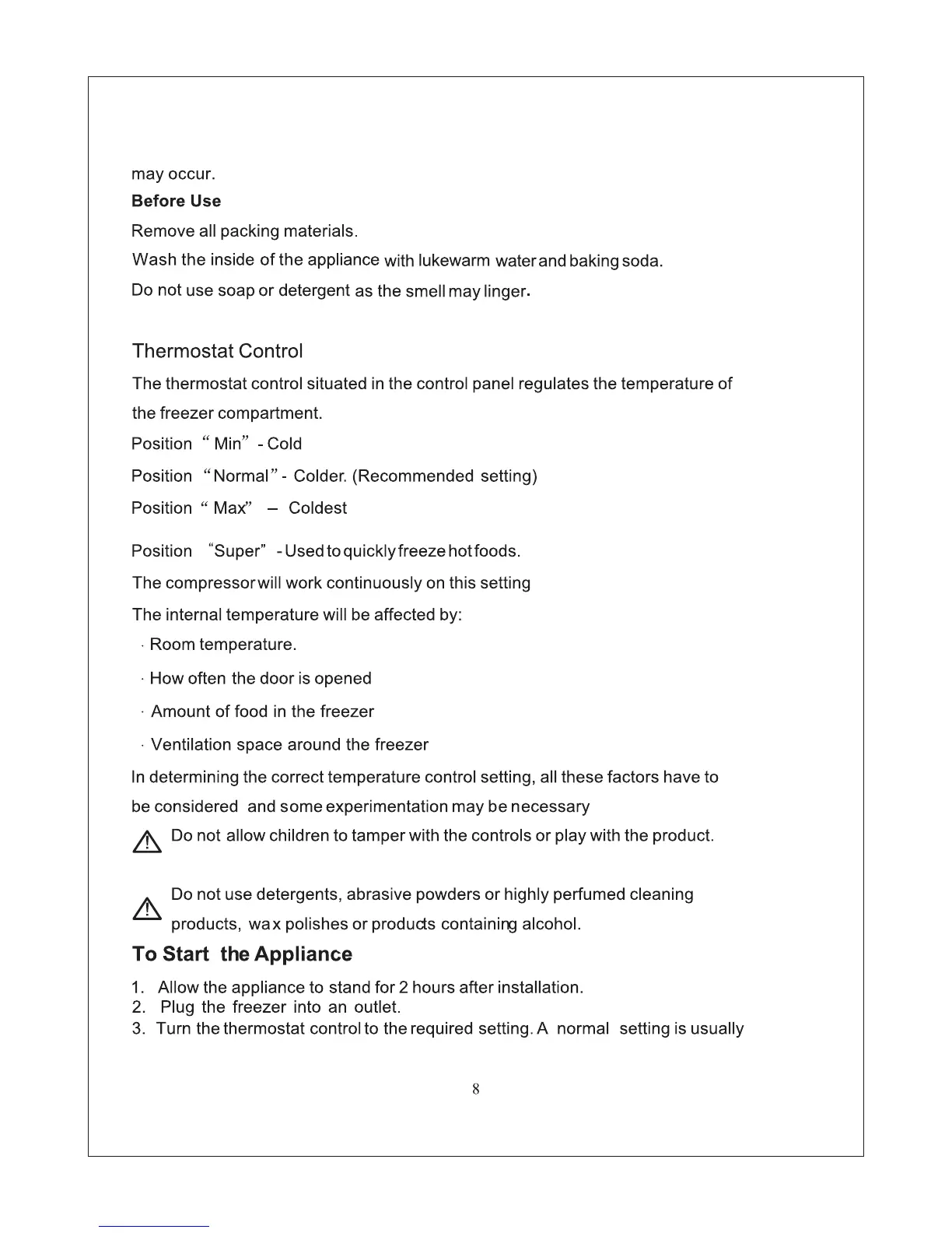 Igloo FRF690B - Before Use and Controls; Preparation Steps; Thermostat Settings; Starting the Appliance
