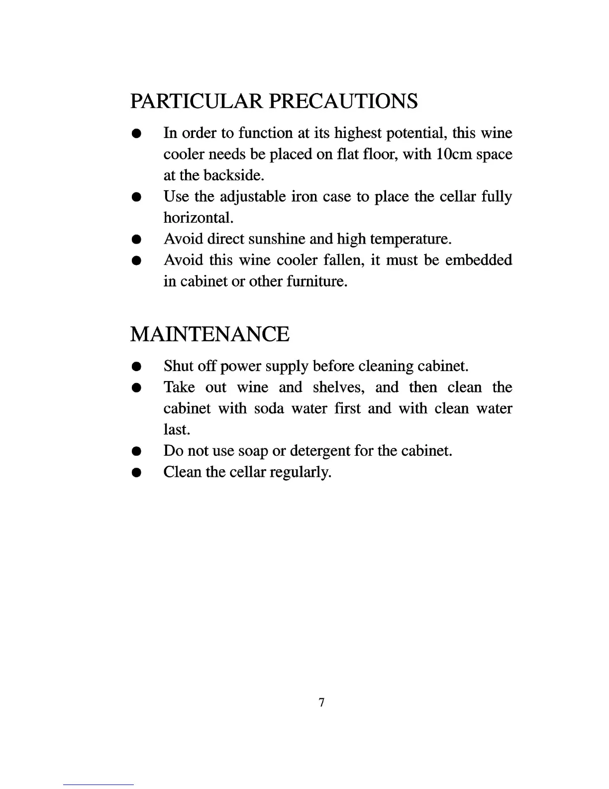 Igloo FRW160UK - Particular Precautions; Maintenance