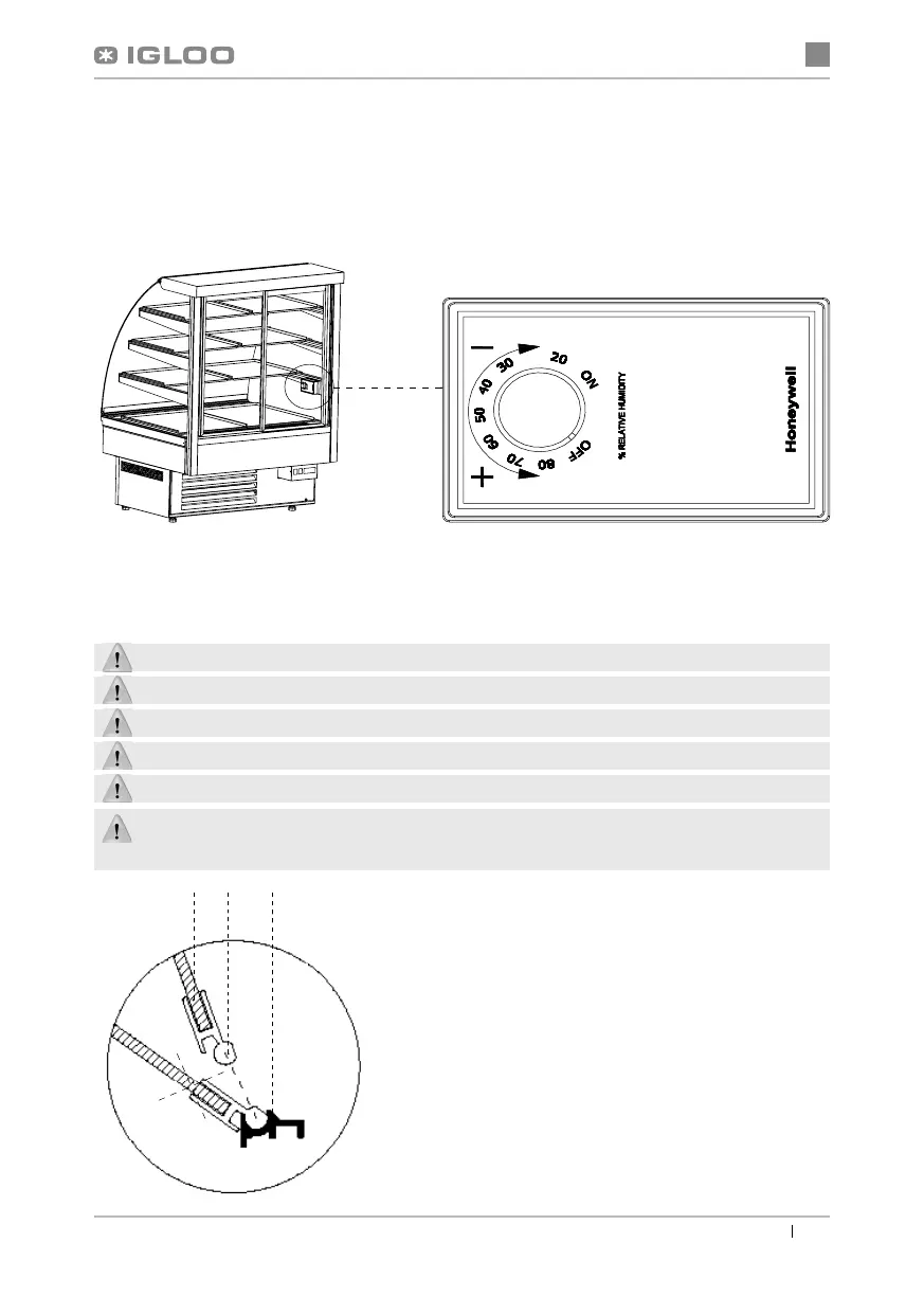 Гигростат предназначен для контролирования влажности, когда температура внутри витрины будет находиться в