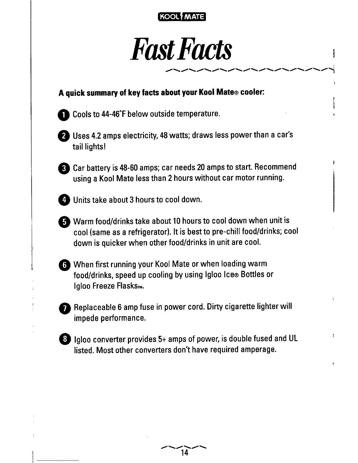 Igloo KoolMate - Fast Facts; Key Product Information Summary