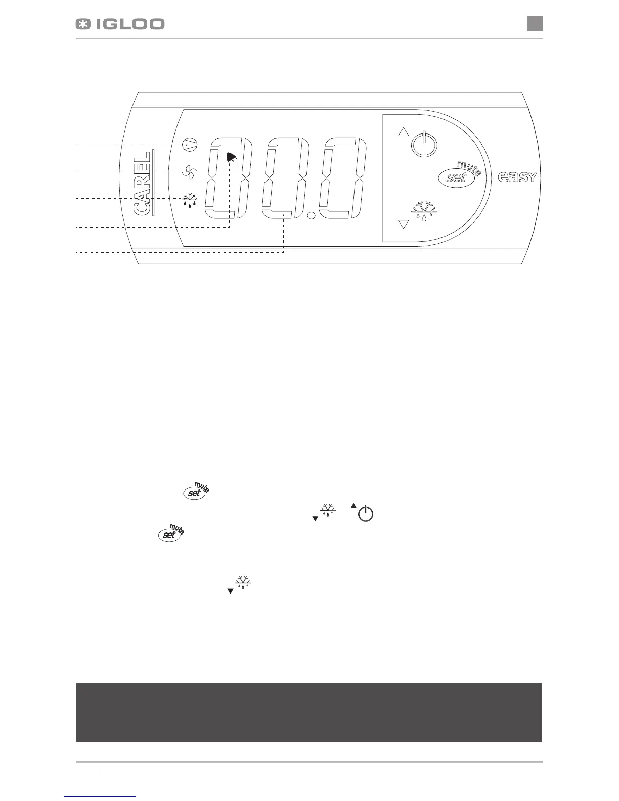 Zapalona dioda 2 - Wentylator: symbol jest widoczny, gdy włączone są wentylatory parownika. Miga, gdy start wentyla-