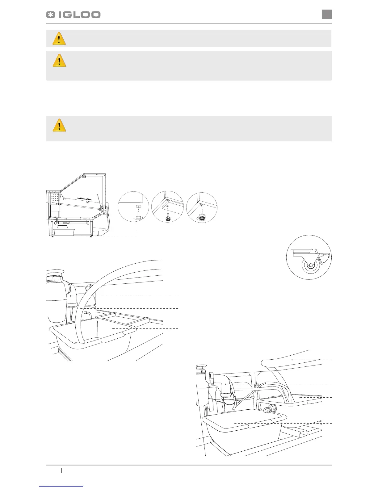 Igloo SAMOS DEEP Series - Fig. 3. Wheel System, Moving System; Fig.2 Removing the Wooden Platform; Fig.4 Condensate Container (Version Without Evaporator); Fig.5 Overflow (Version with Evaporator)