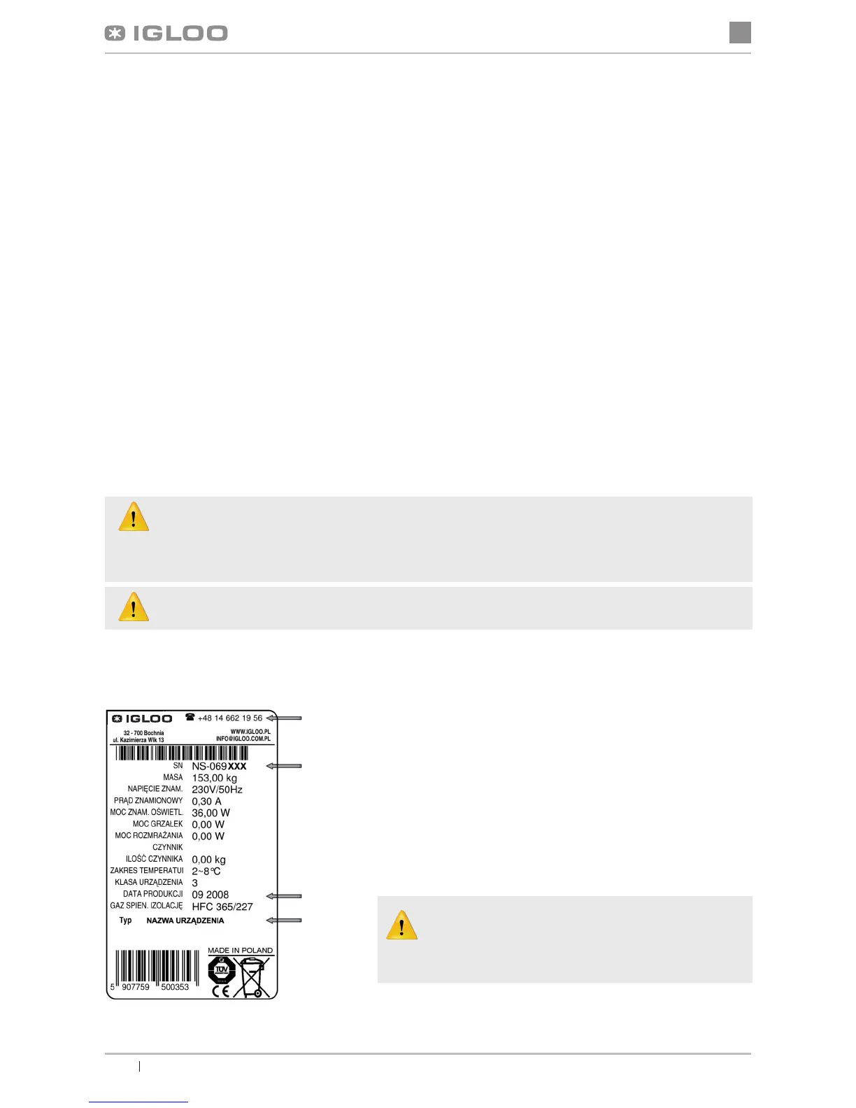 Igloo wenden, indem Sie die Angaben aus Typenschild angeben Abb.15 (S.37)