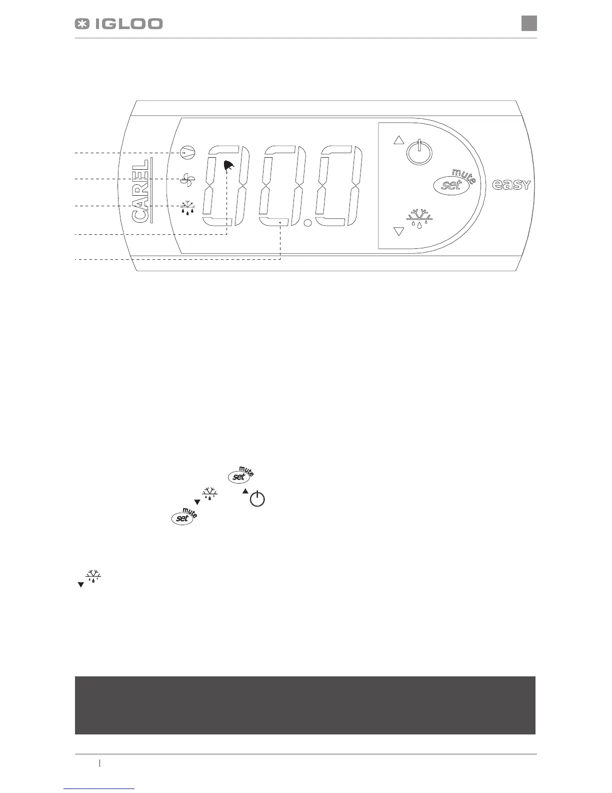 Diode 3 leuchtet - Entfrostung: diese Symbol wird gezeigt, wenn die Entfrostungsfunktion eingeschaltet ist. Es blinkt, wenn
