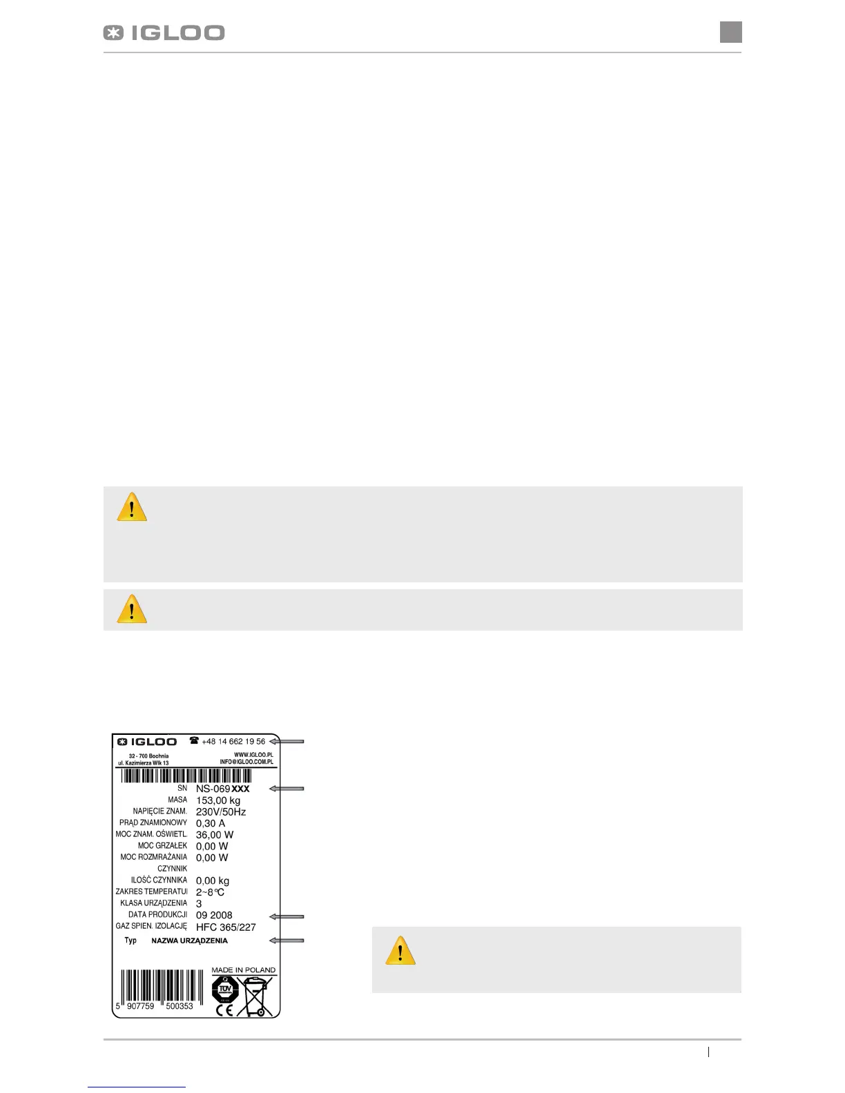 далее не действует правильно, следует связаться с Техническим сервисом фирмы Igloo, указывая данные из щитка