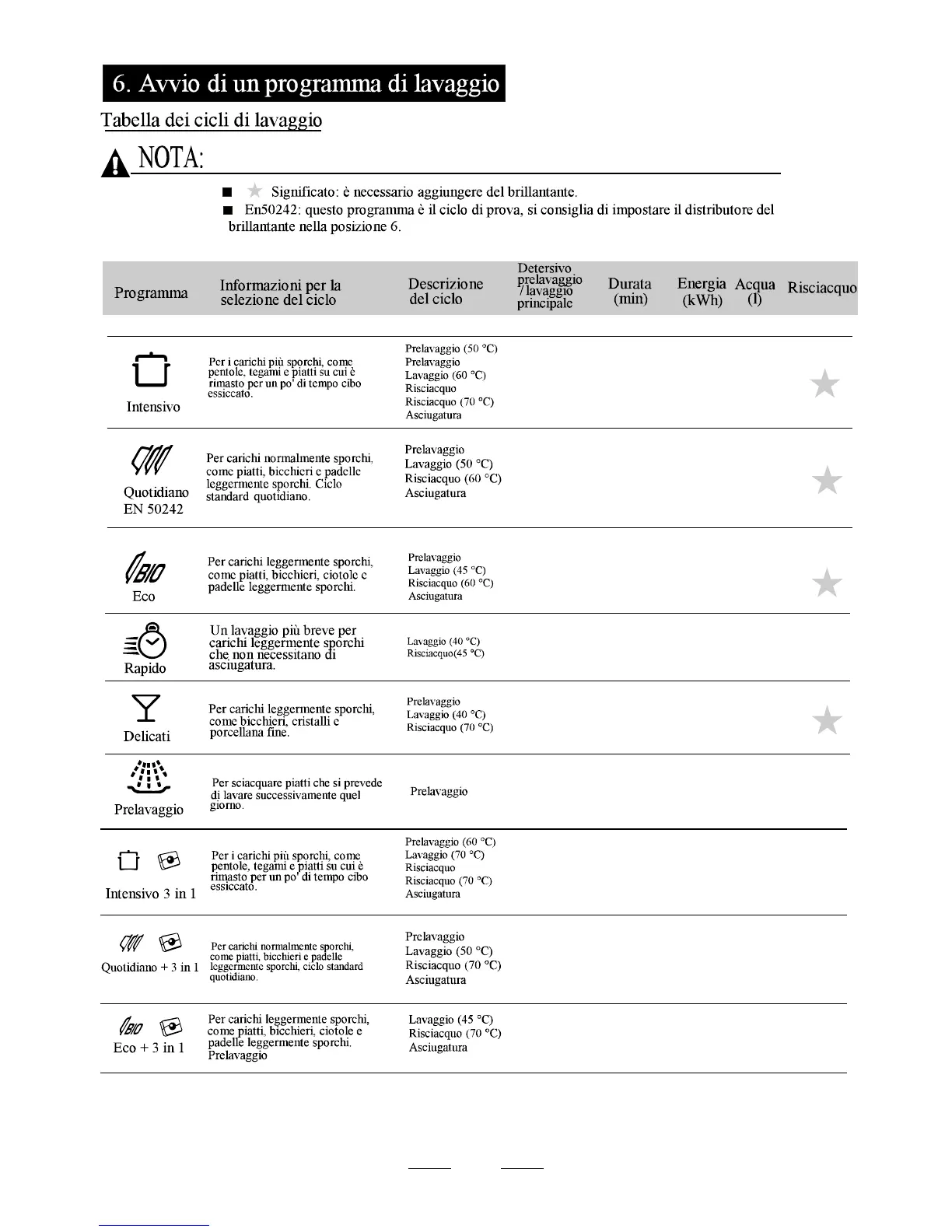 Ignis Dishwasher - Starting a Wash Cycle; Overview of Wash Cycles