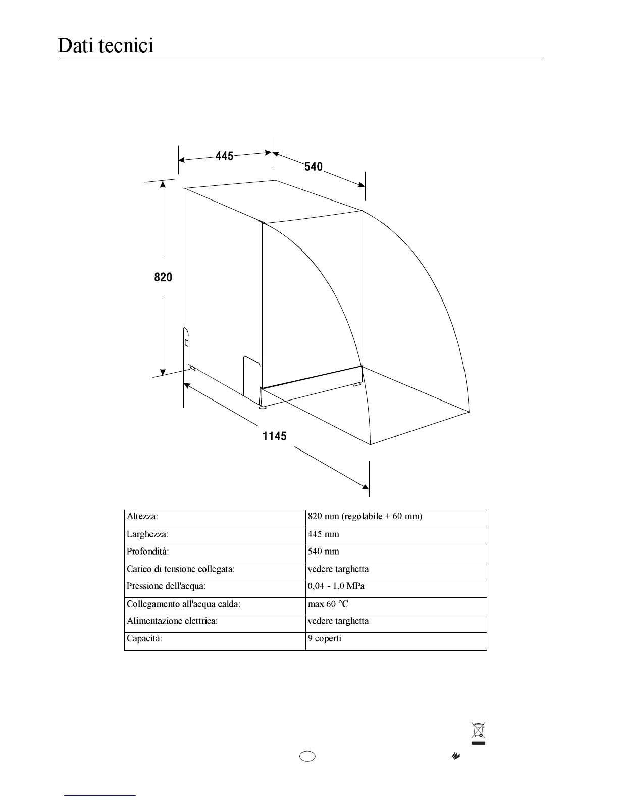 Ignis Dishwasher - Dishwasher Technical Specifications; Appliance Dimensions and Specs