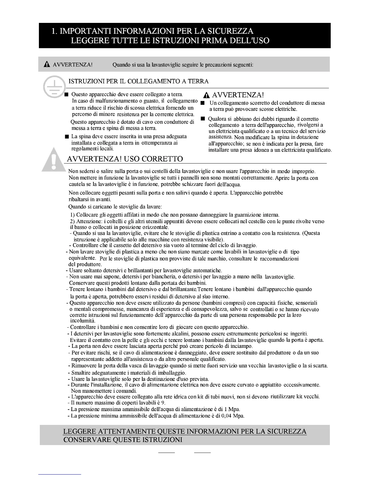 Ignis Dishwasher - General Safety Information; Safety Warnings for Correct Use
