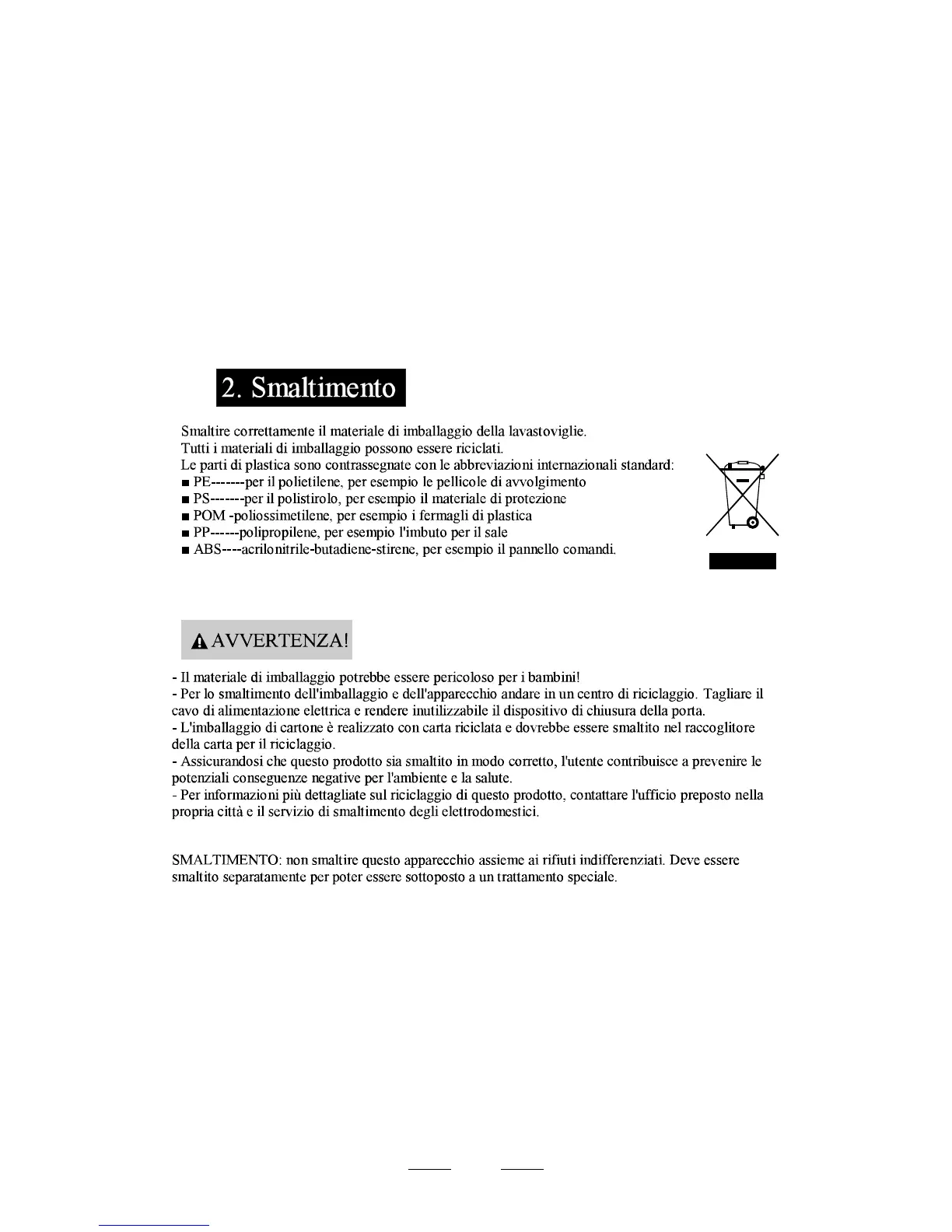 Ignis Dishwasher - Product Disposal; Disposing of Appliance and Packaging