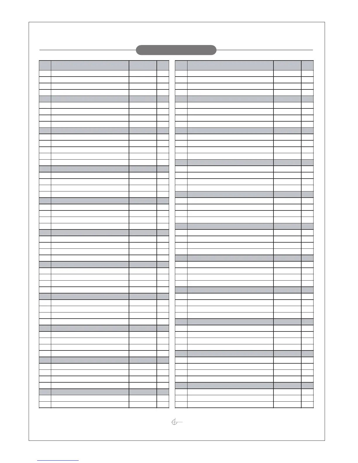 Item Des cription P art # Qty Item Des cription P art # Qty