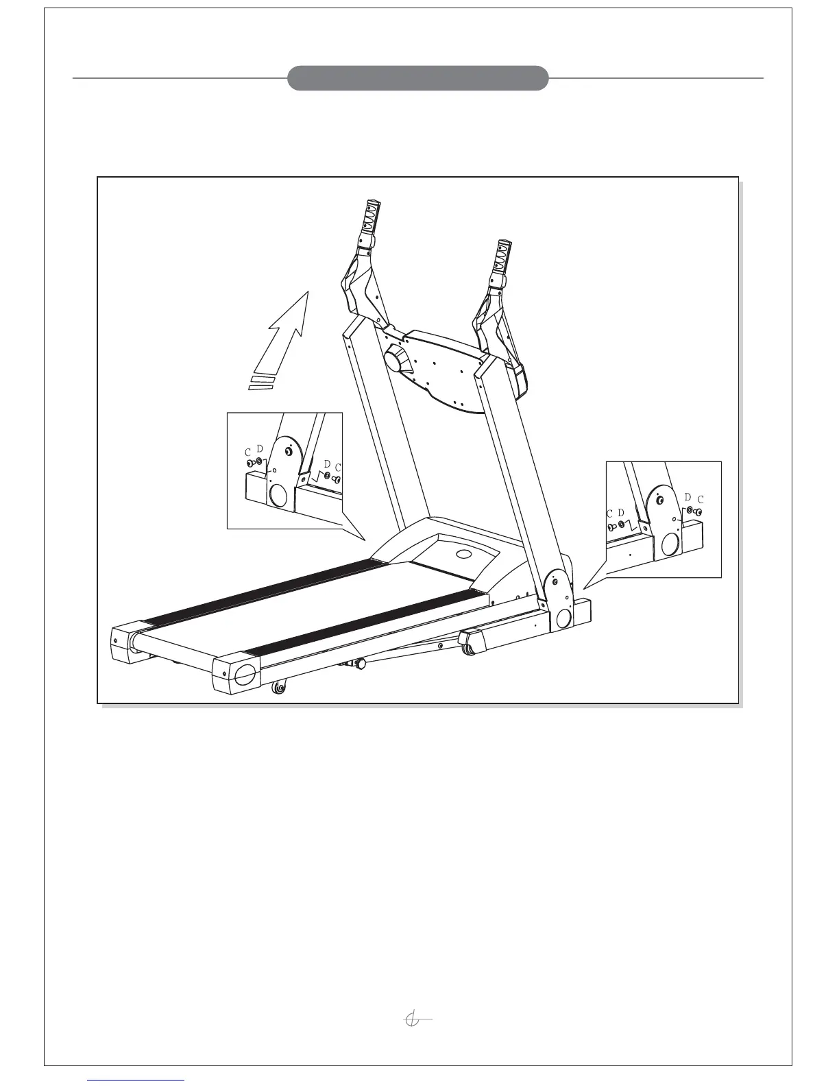 Lift the upright and carefully thread the Allen Bolts (C) and washers (D) inside holes at the bottom of the