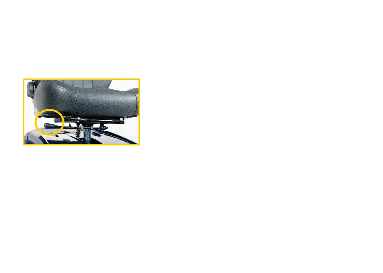 To change the angle of the seat, sit on the seat, pull the swivel handle towards the front of the scooter and turn the seat