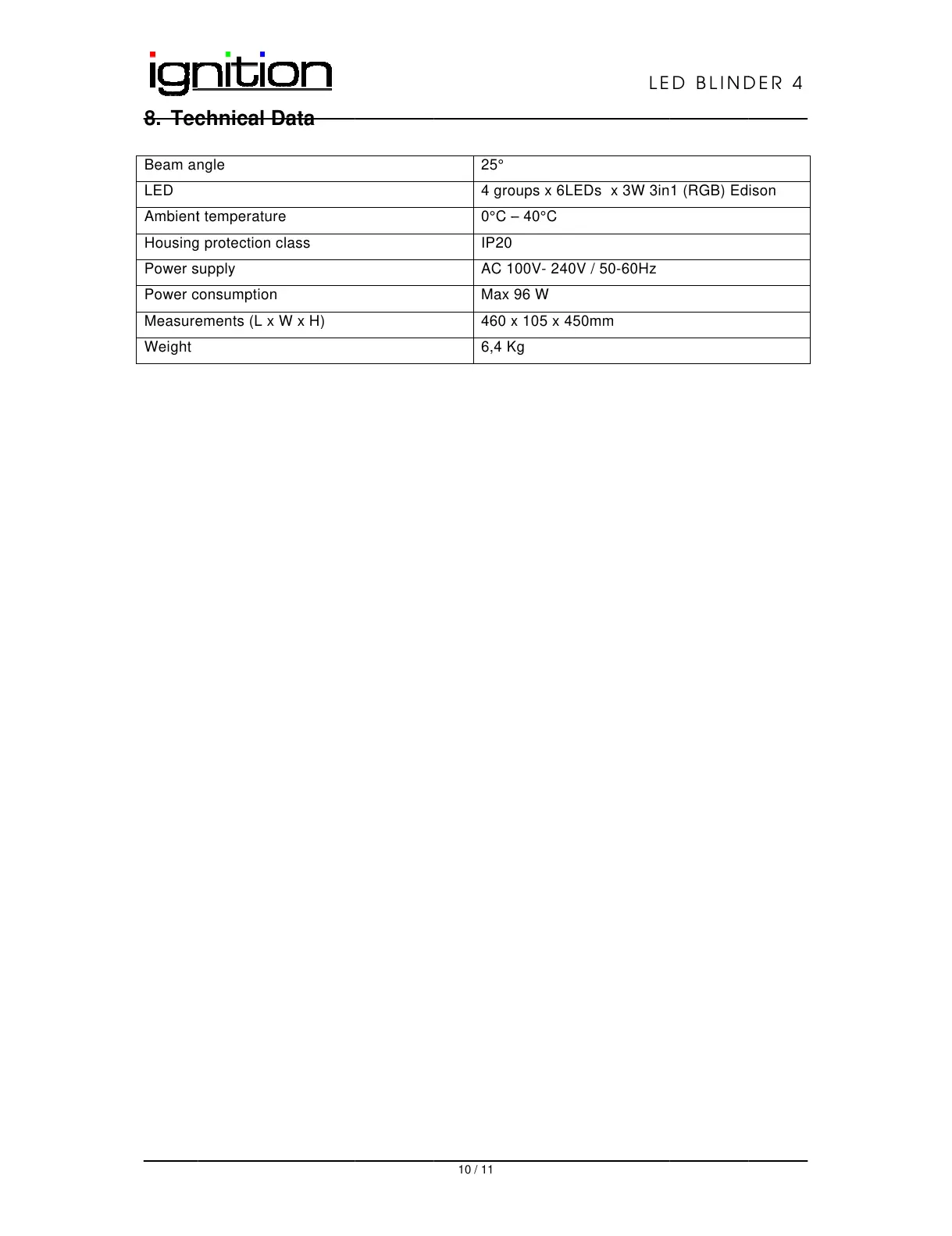 Ignition LED Blinder 4 - Tec Chnical Data