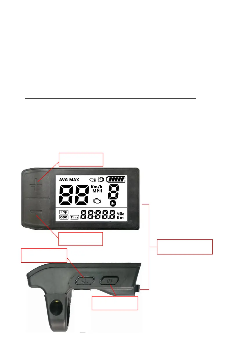 ‘PLUS’ : Pedal assist level up, Turns on lights when held for 2 seconds
