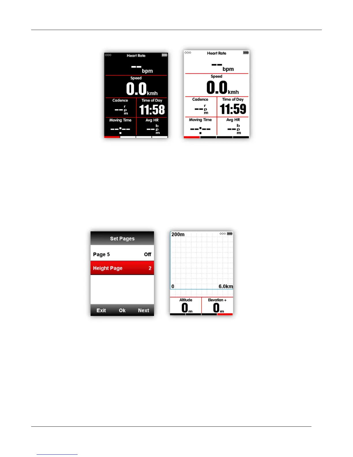 The height page can be turned on/off under the ride mode, you can also set the display area and