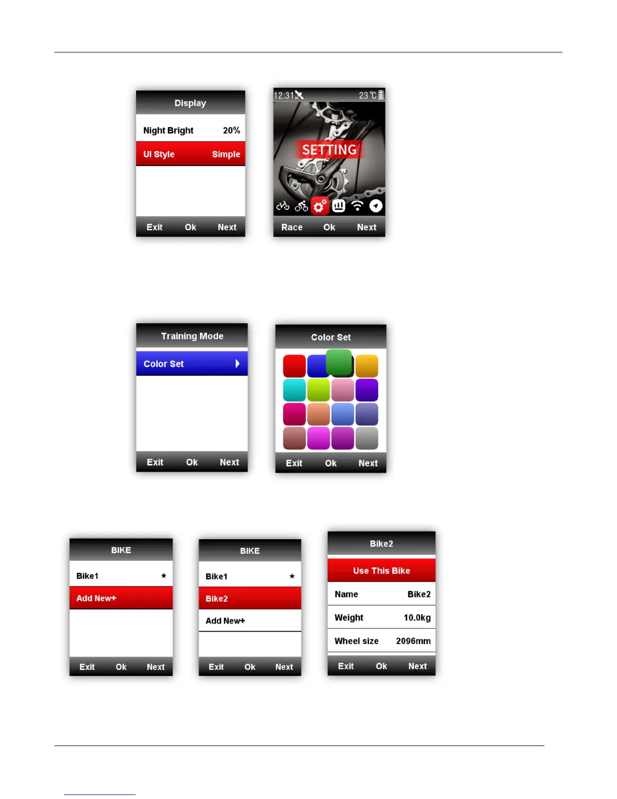 iGPSPORT iGS618 - Mode Color Customization and Bike Management; Customizing Colors for Different Riding Modes; Adding and Managing Multiple Bike Profiles
