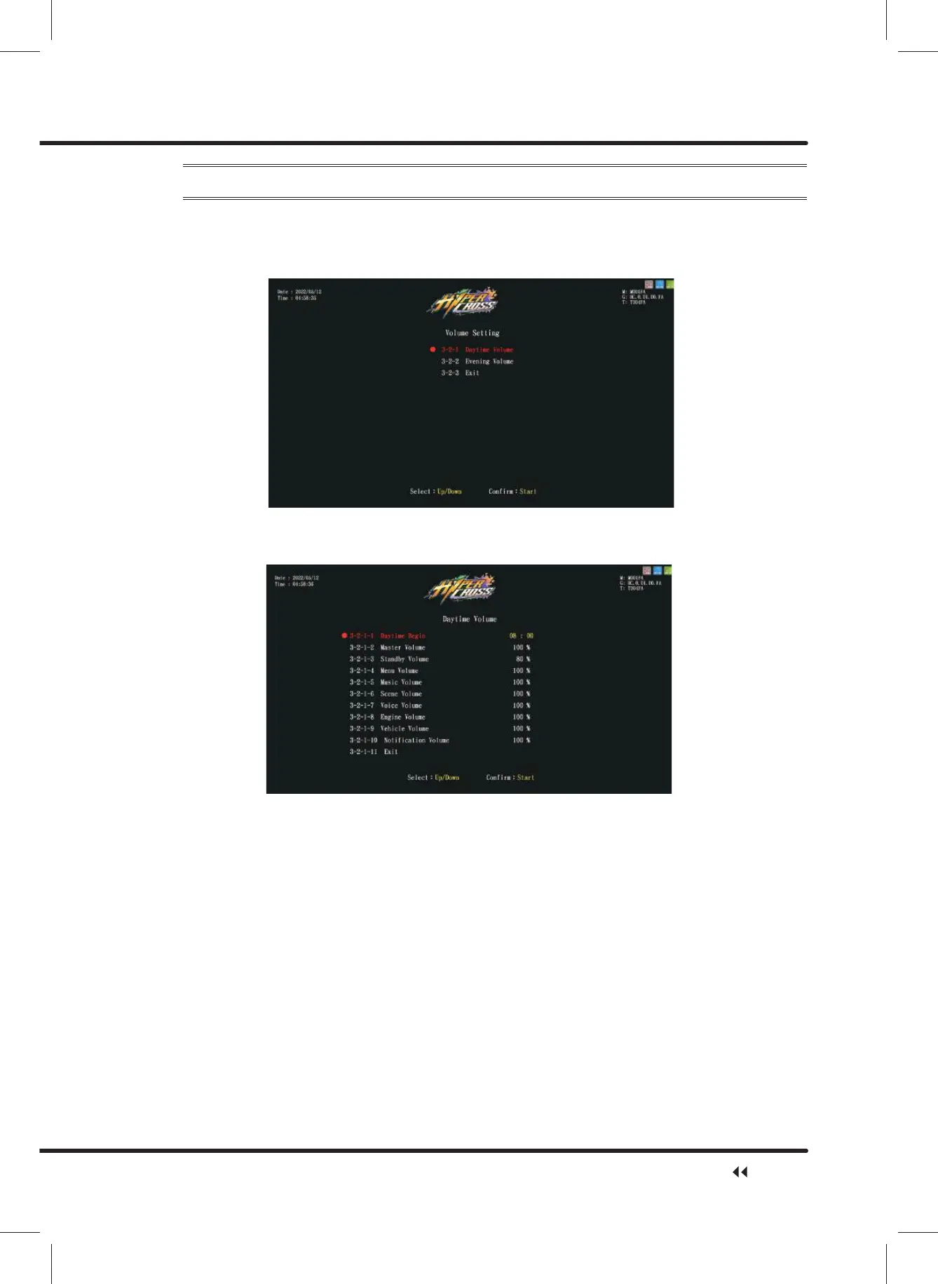 ȞStartȟ button to enter the page of ȞDaytime (Evening) Volume Settingȟ, and the