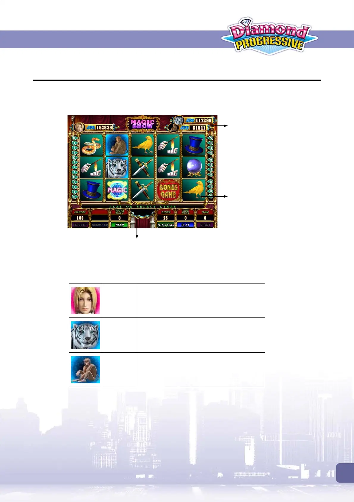 Magic Show is a 15-reel & 9/25-liner game with 3 different bonus games.