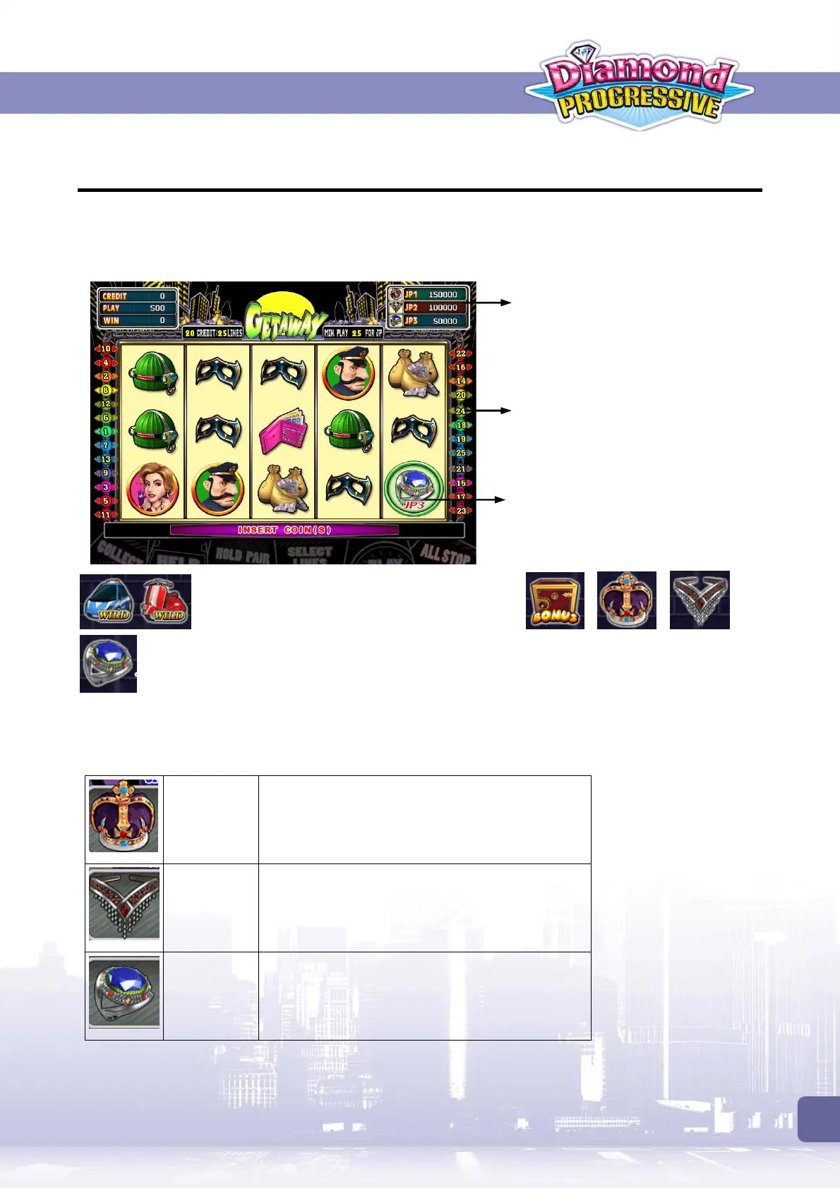 Getaway is a 15-reel & 9/25-liner game with bonus games.