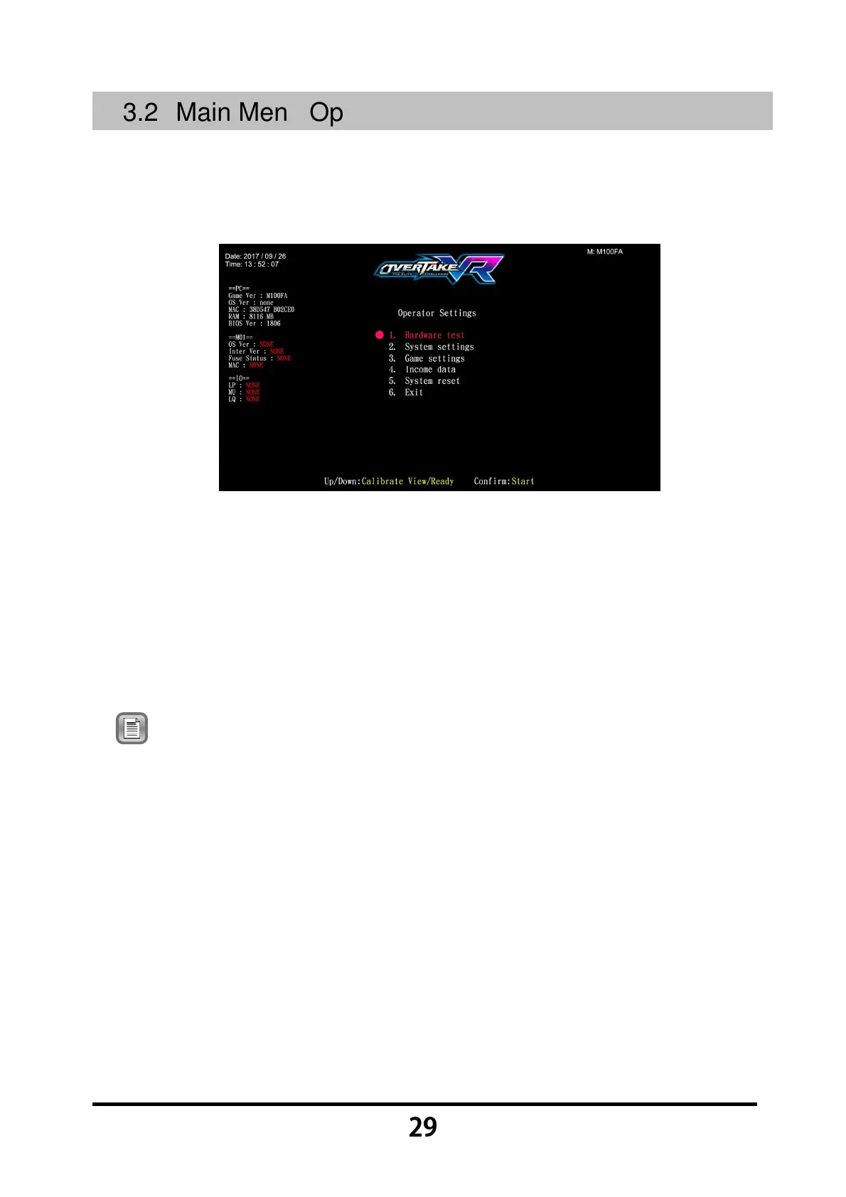 3.2 Main Menu Operation