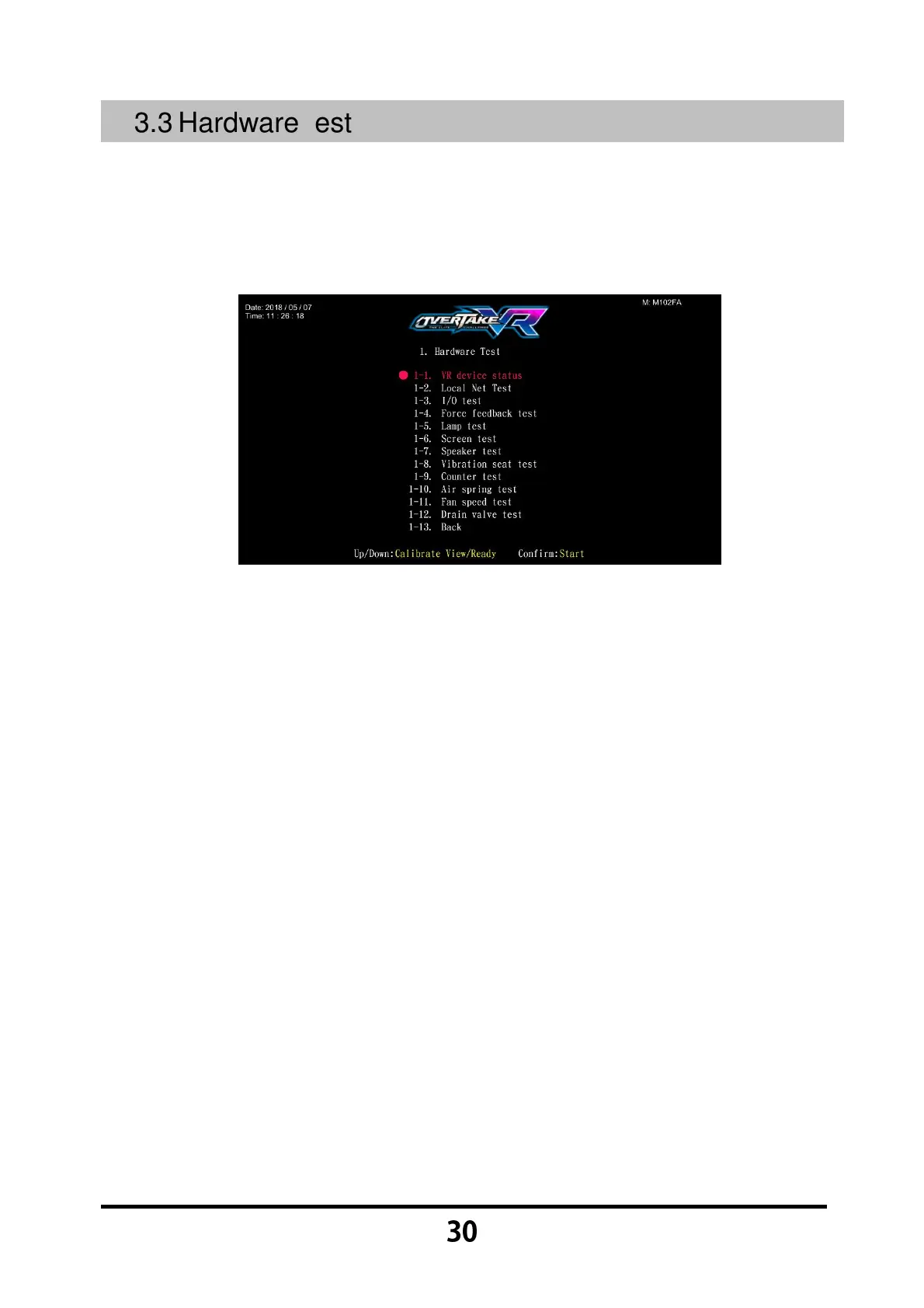 Enter 【Operator Settings】→【1.Hardware test】 and the screen will display