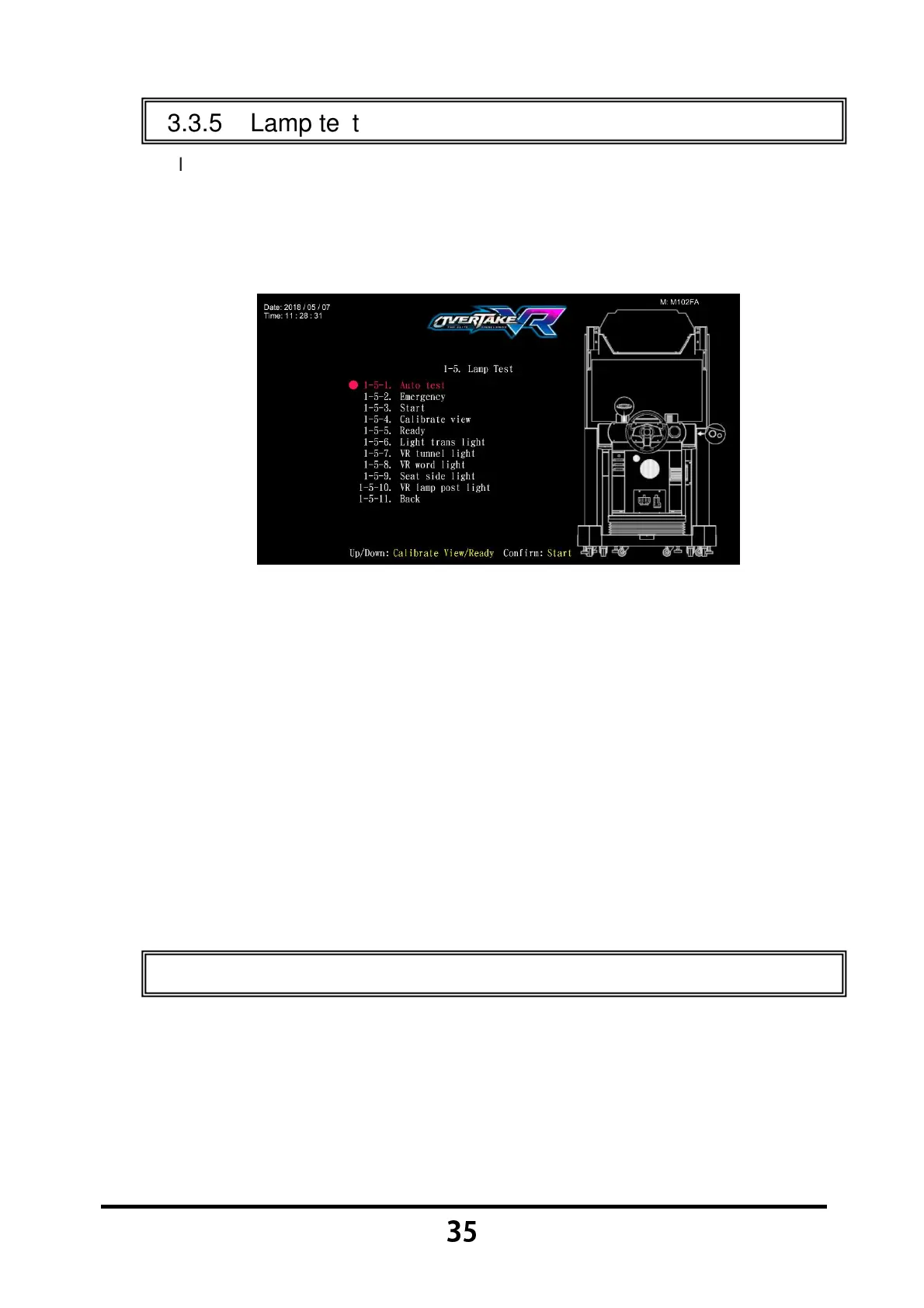 Enter 【Operator Settings】→【1.Hardware test】→【1-5.Lamp test】,