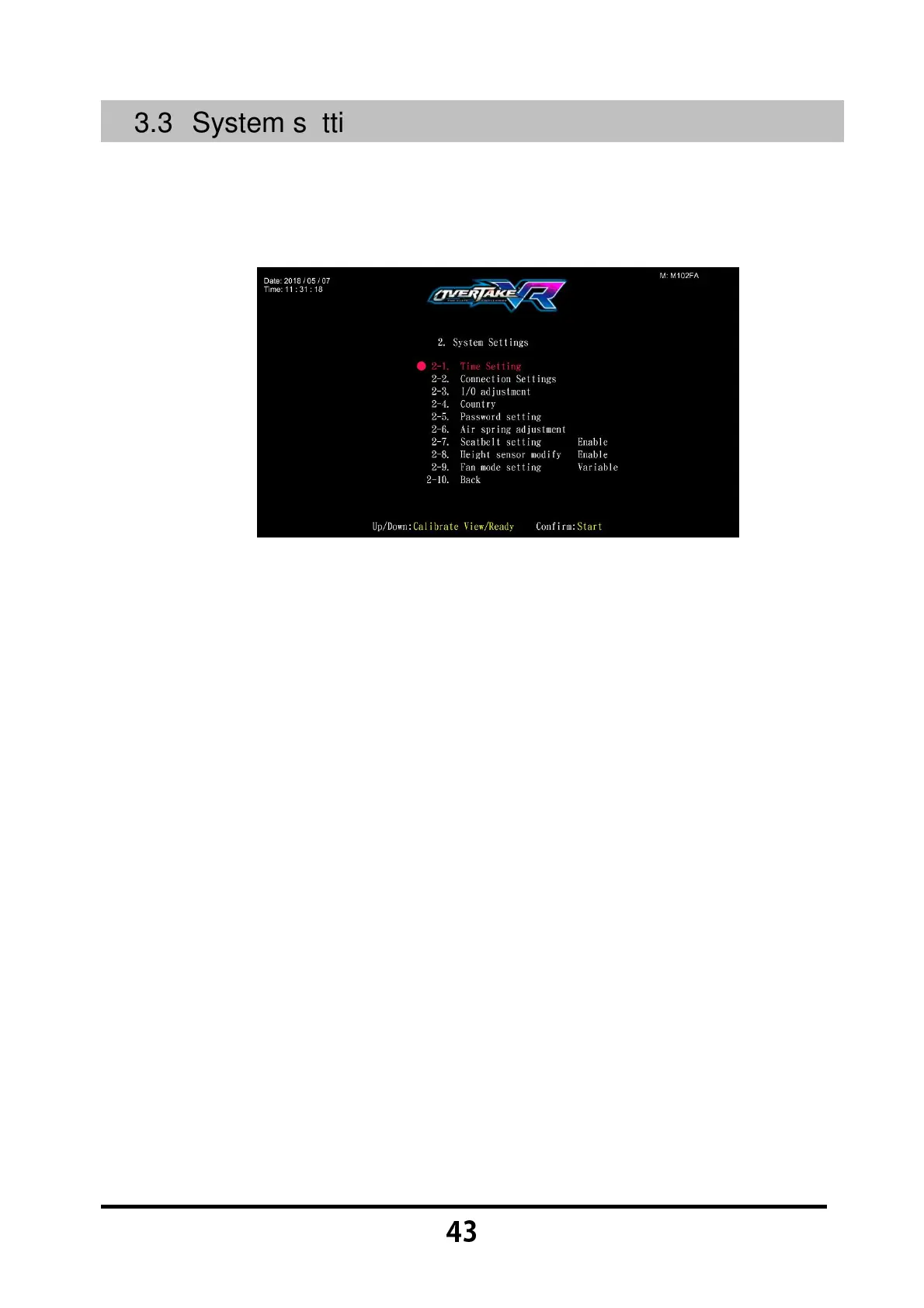 Enter 【Operator Settings】→【2.System settings】, and the screen will