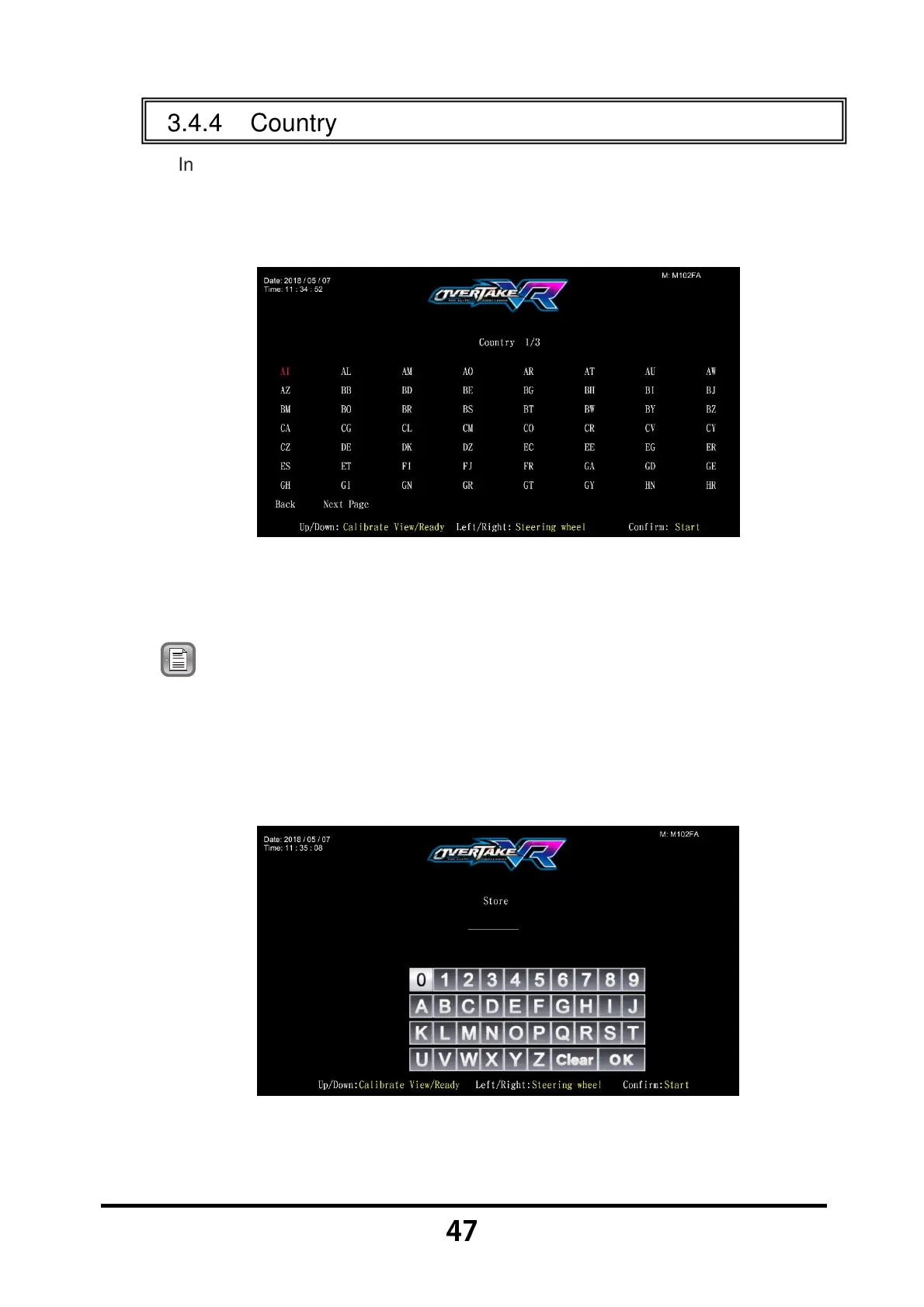 Enter 【Operator Settings】→【2.System settings】→【2-4.Country】,