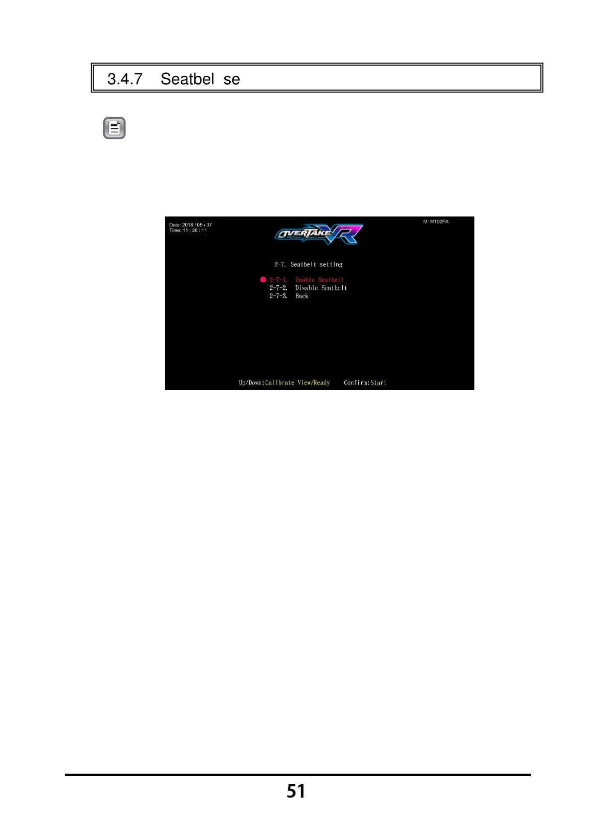 Enter 【Operator Settings】→【2.System settings】→【2-7.Seatbelt