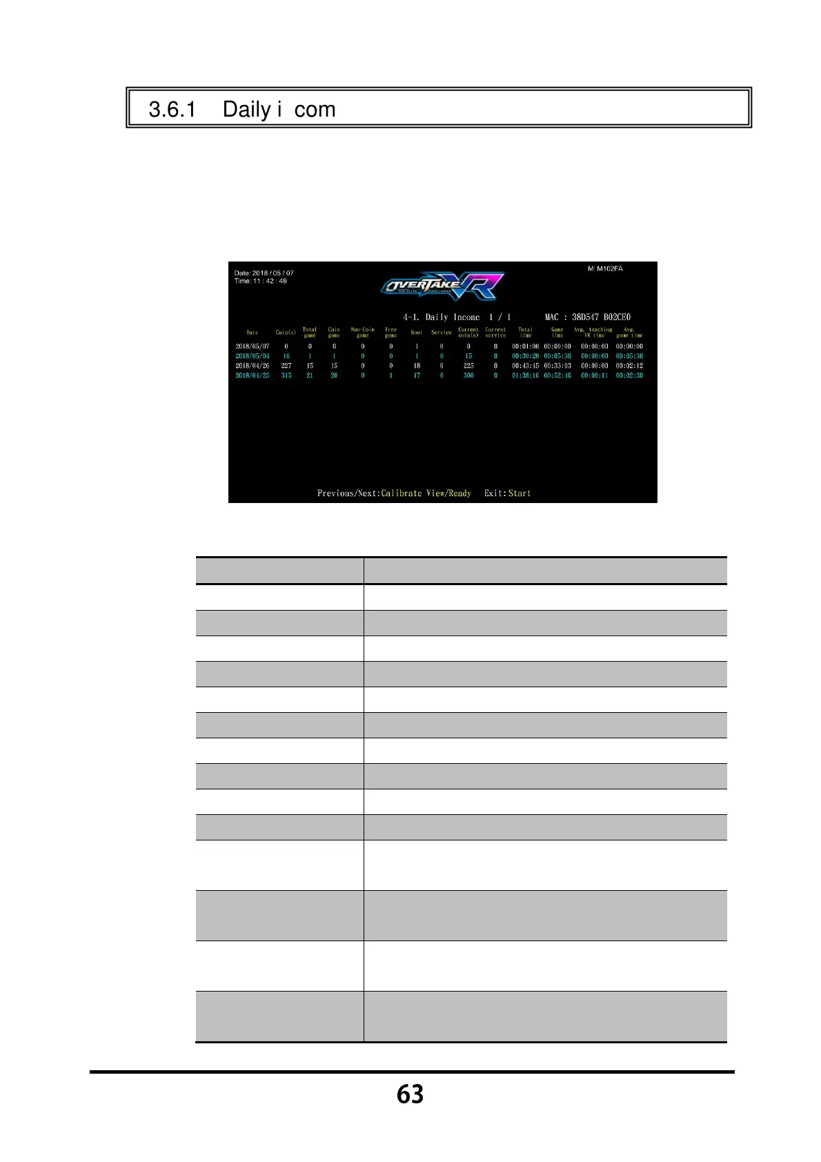 Enter 【Operator Settings】→【4.Income data】→【4-1.Daily income】,