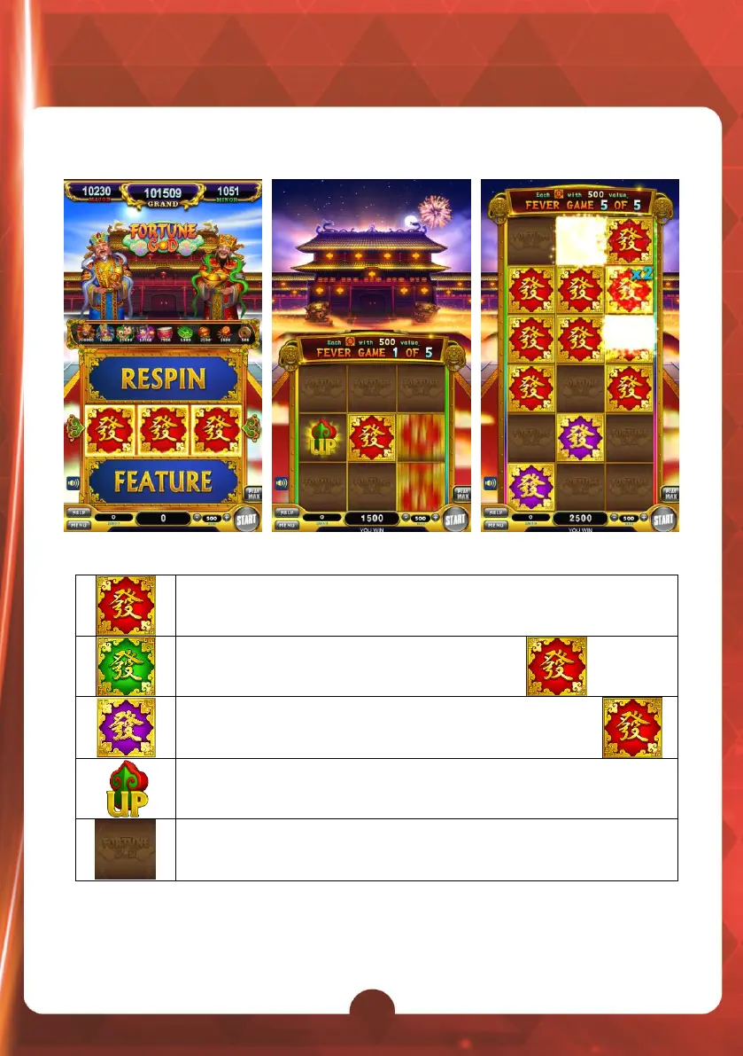 You have 5 play times, and there are only 5 symbols in FEVER GAME: