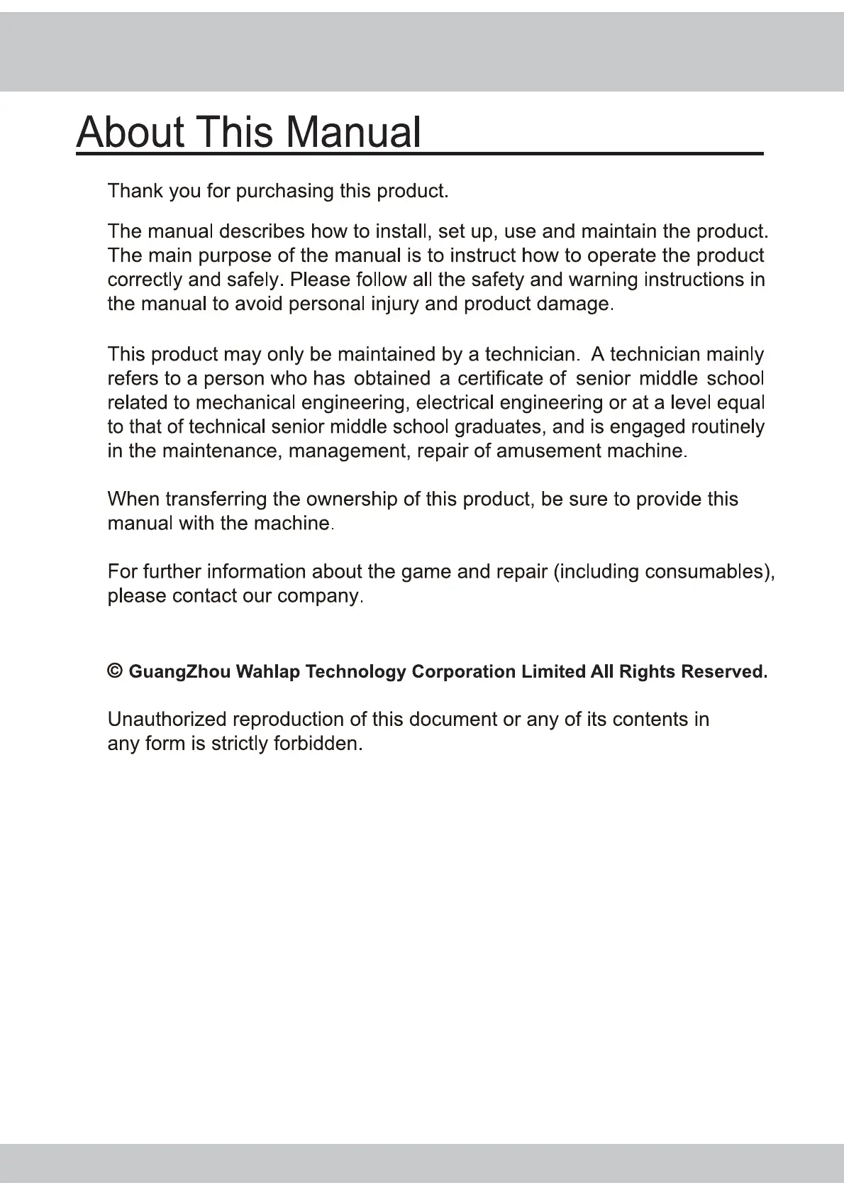 IGS Pirate Falls - About This Manual
