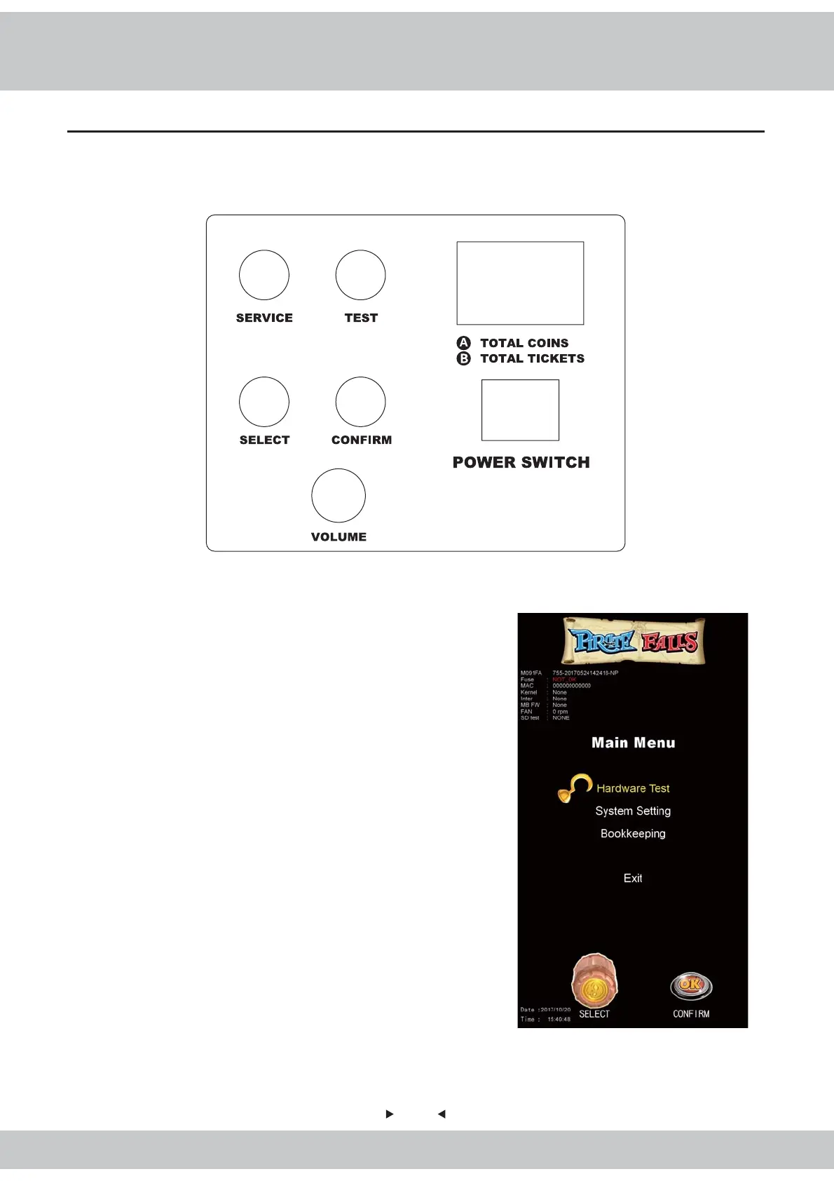1.Press the Test Key on the Control Box to enter the Main Menu screen for
