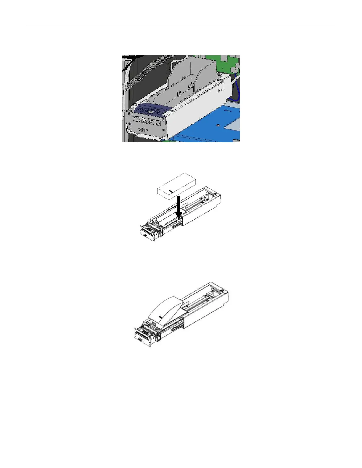 4. Push the printer tray back into the gaming machine and secure the metal printer stopper