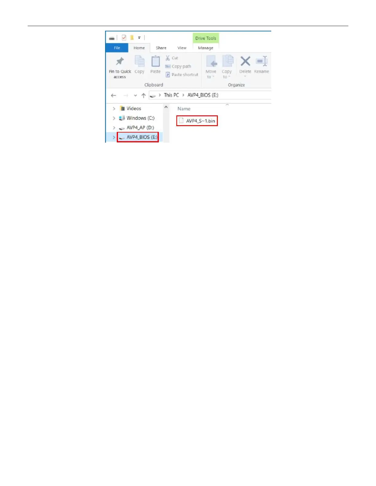 6. Copy the BIOS bin file from the source thumb drive (example label: AVP4P_SGF_X_XX) to