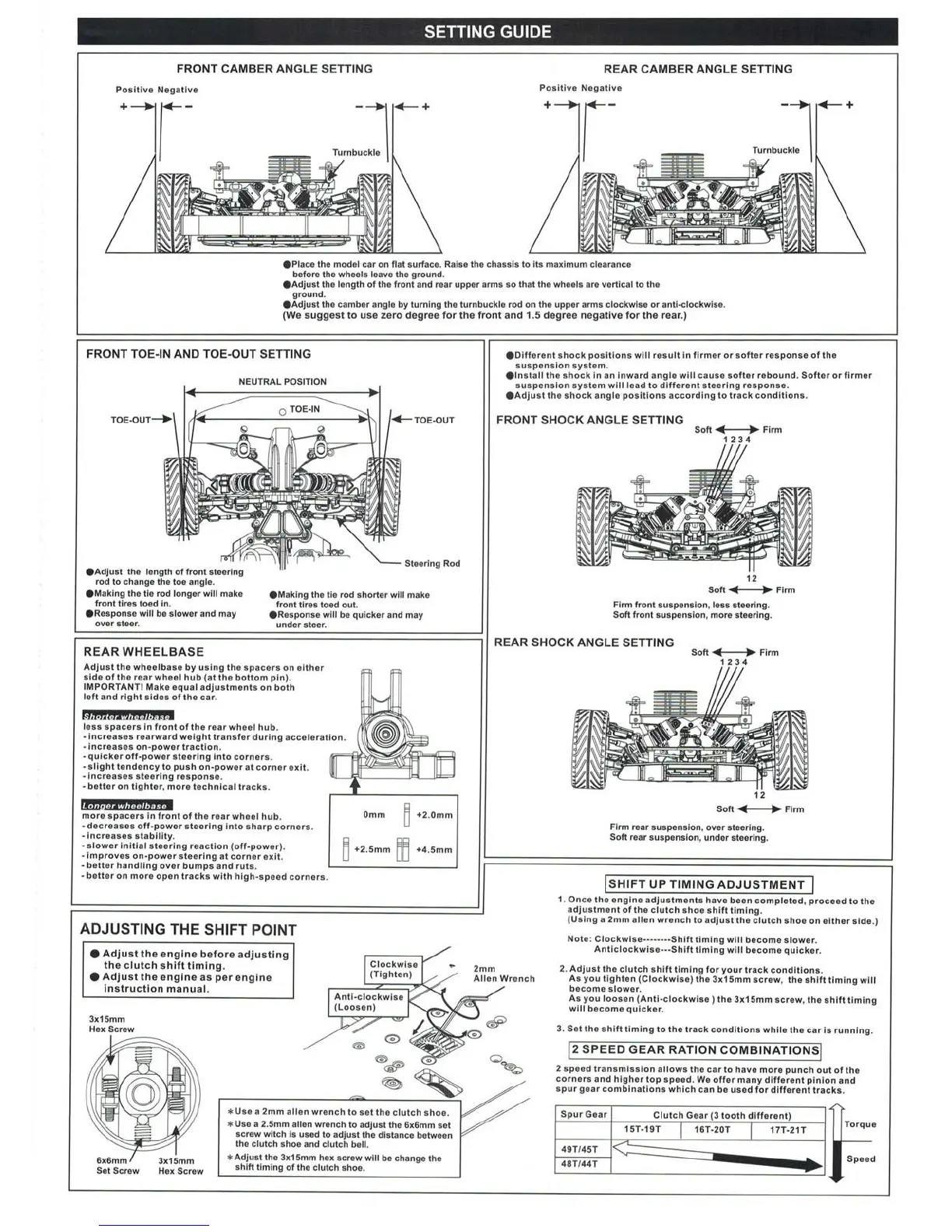IGT8 GT PRO - Setting Guide for Optimal Performance; Front Camber Angle Setting; Rear Camber Angle Setting; Adjusting the Shift Point