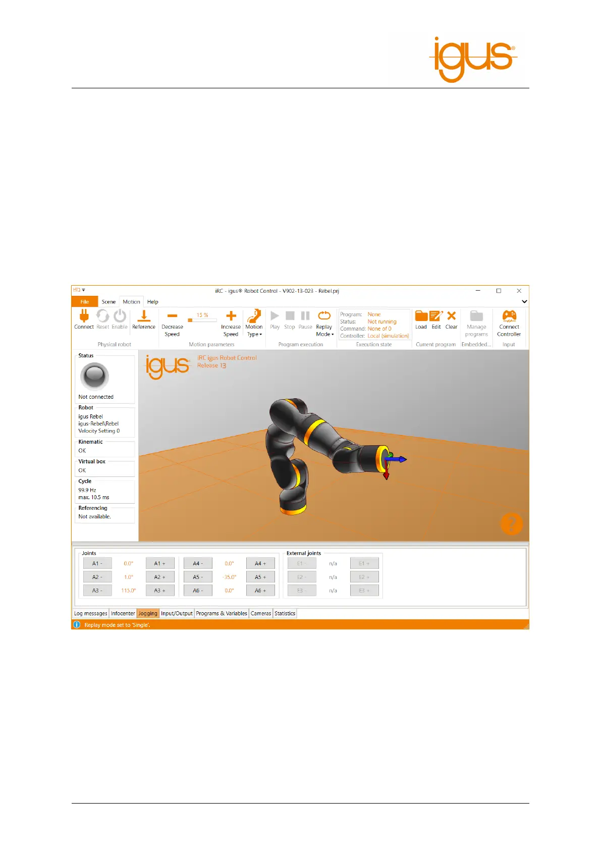iRC - igus Robot Control is a control and programming environment for robots. The 3D user interface