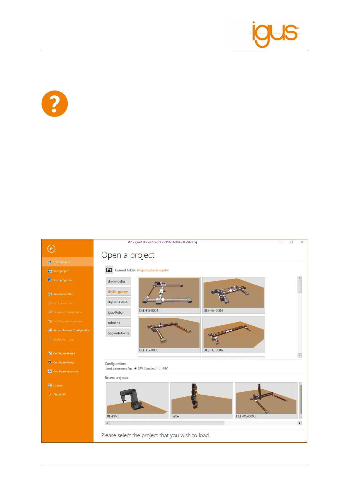 Figure 4: Selection of the robot type via the menu item "File" → "Open Project"