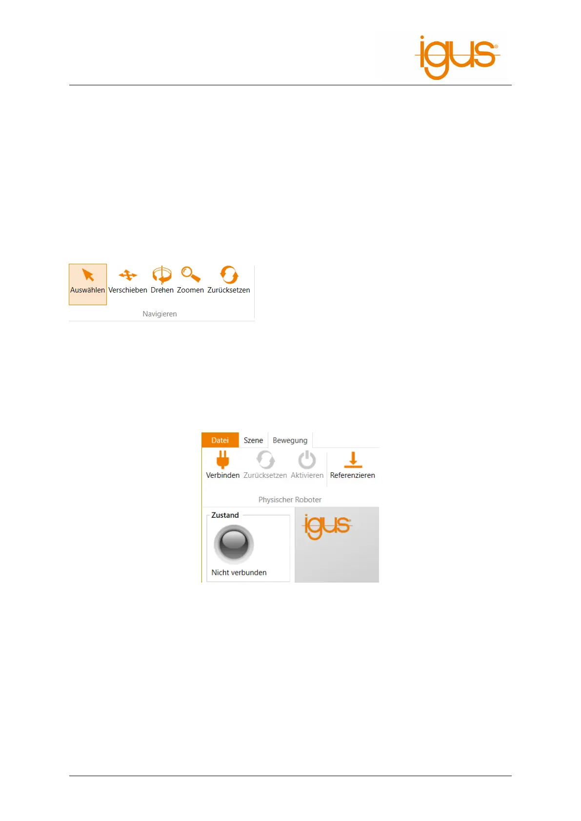 Robot" button group in the "Motion" tab (see Fig. 5). After that, the robot must be referenced.